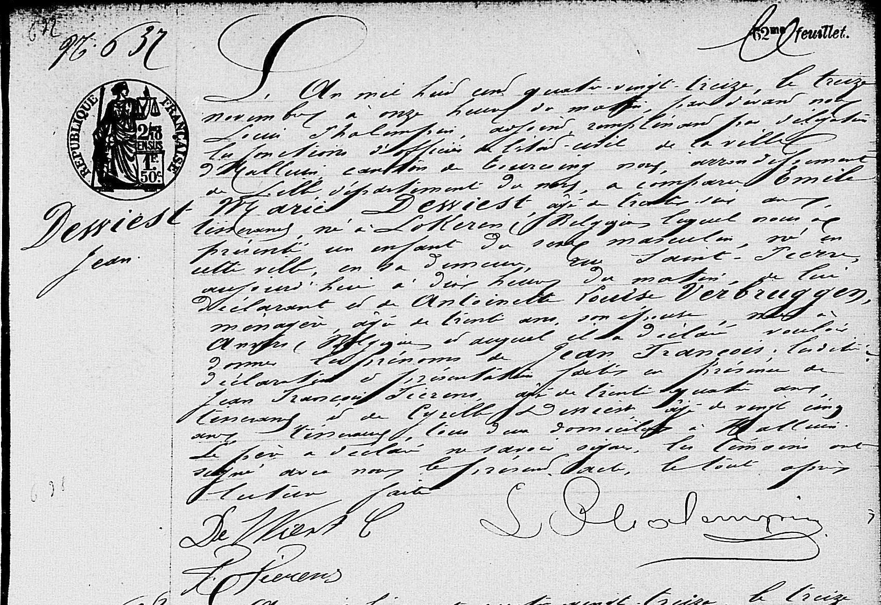 Geboorteakte (Bron : Archives départementales du Nord, FR)