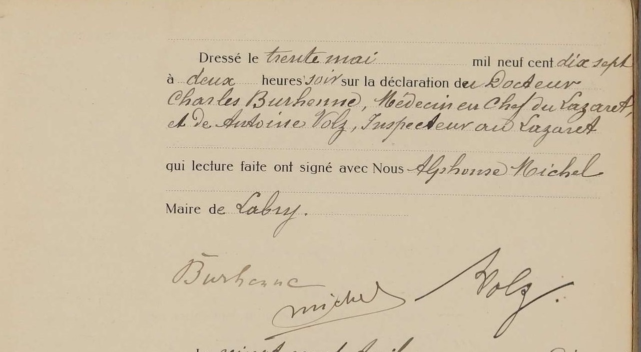 Acte de décès (Source : Archives départementales de