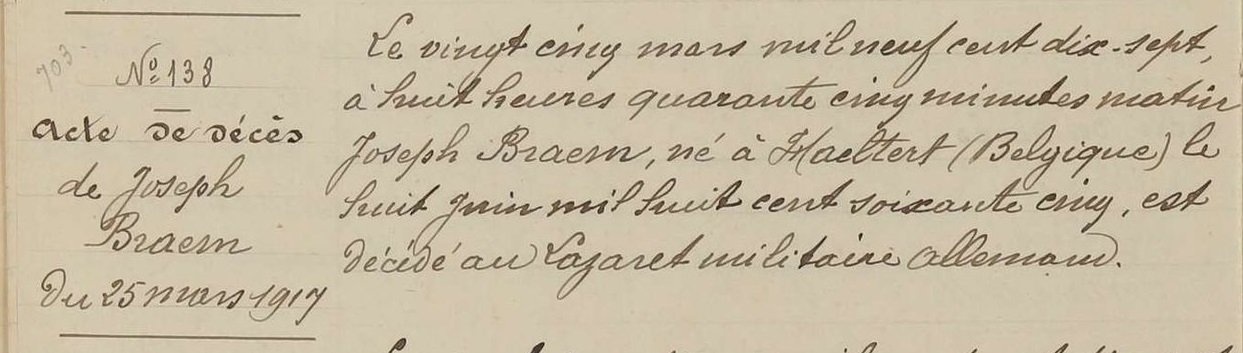 Acte de décès (Source: Archives départementales de