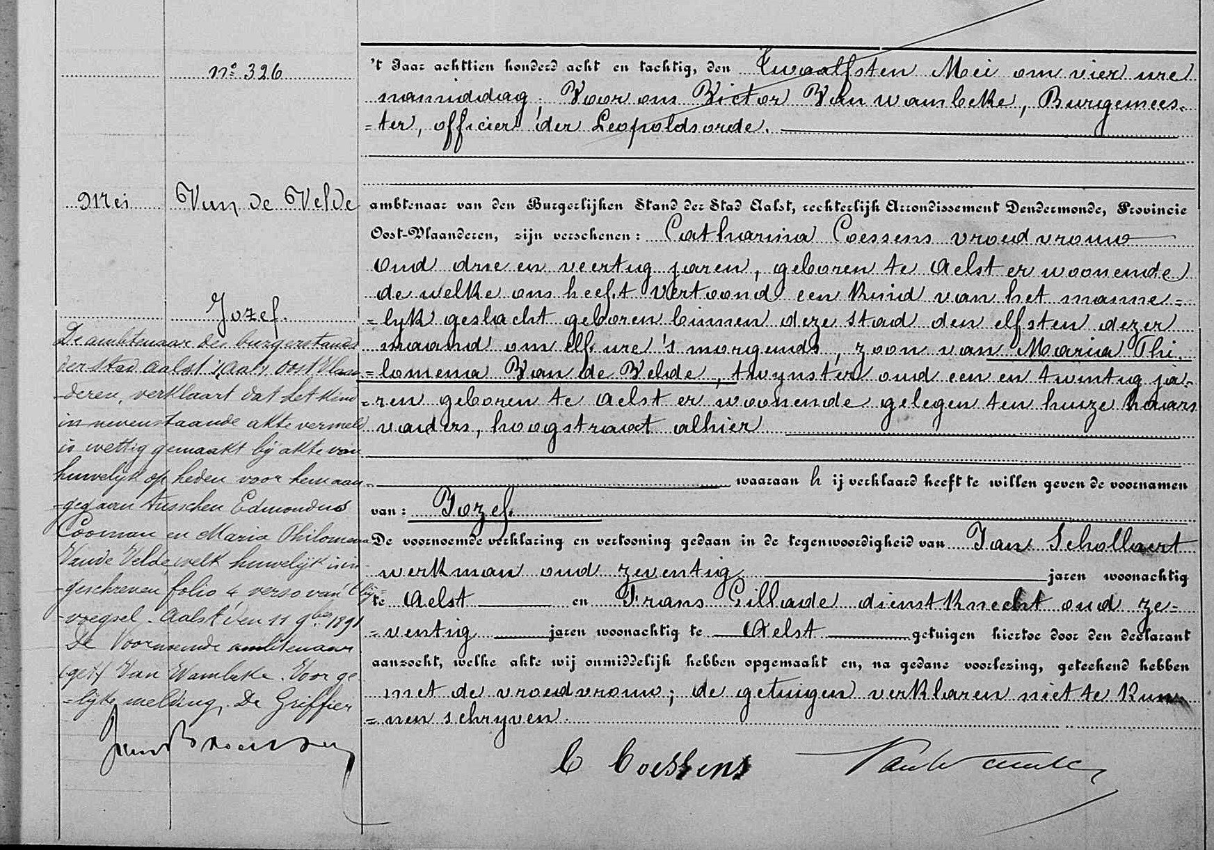 Geboorteakte te Onkerzele, OV, BE (Bron [358]) (Het beeld downloaden