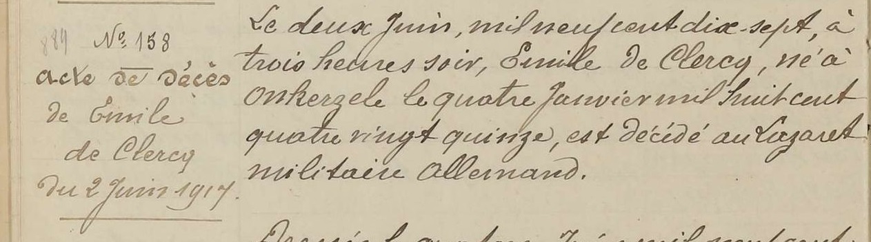 Overlijdensakte (Bron: Archives départementales de