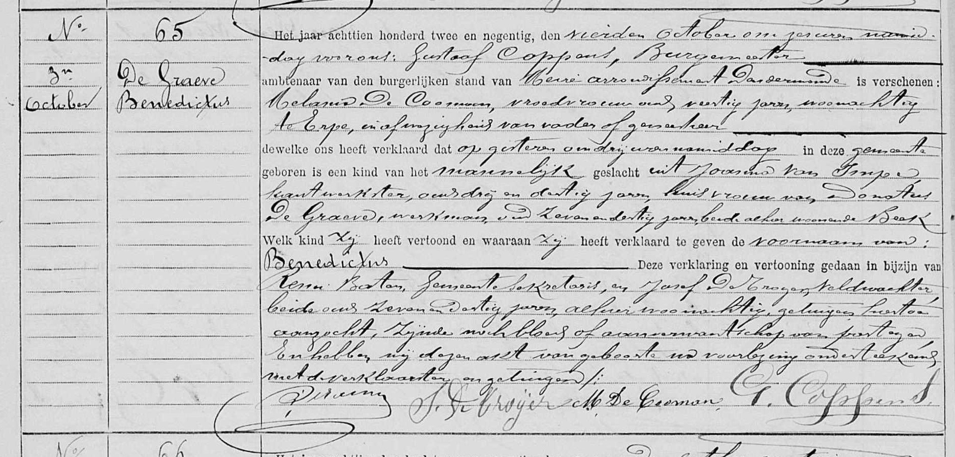 Geboorteakte te Mere, OV, BE (Bron [358]) (Het beeld downloaden voor