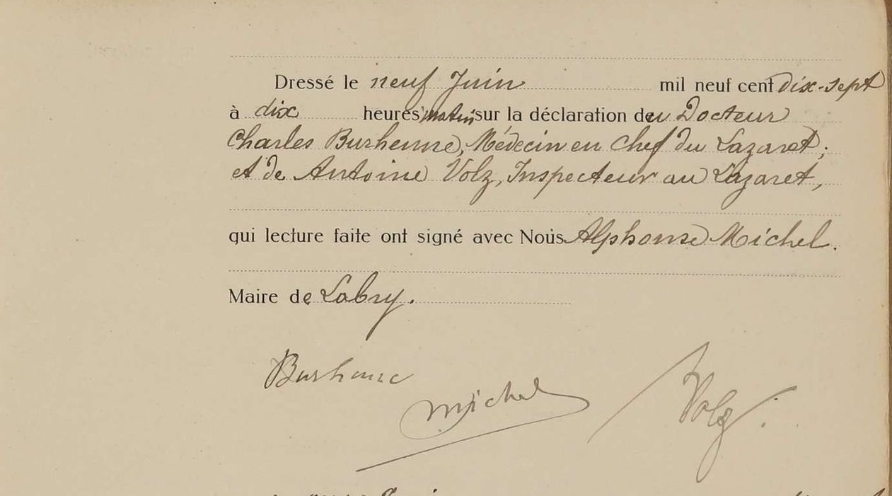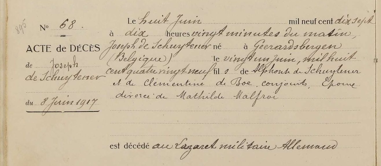 Overlijdensakte (Bron: Archives départementales de
