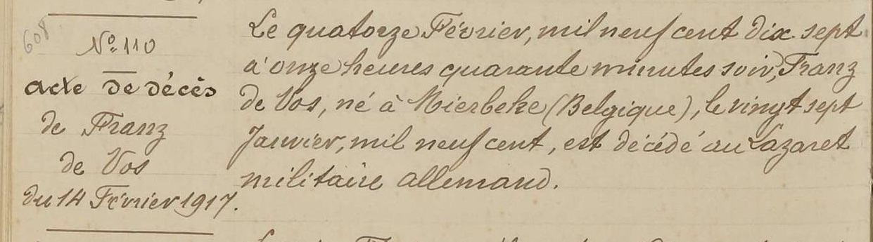Overlijdensakte (Bron: Archives départementales de