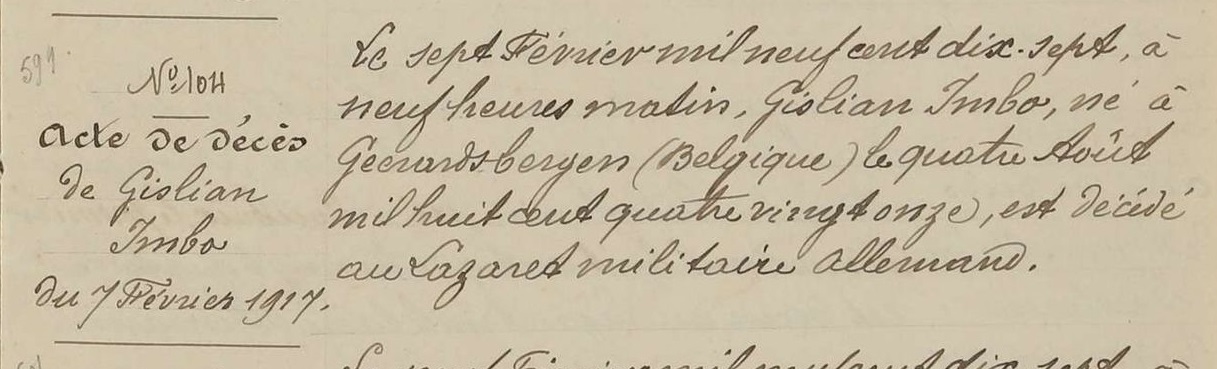 Overlijdensakte (Bron: Archives départementales de