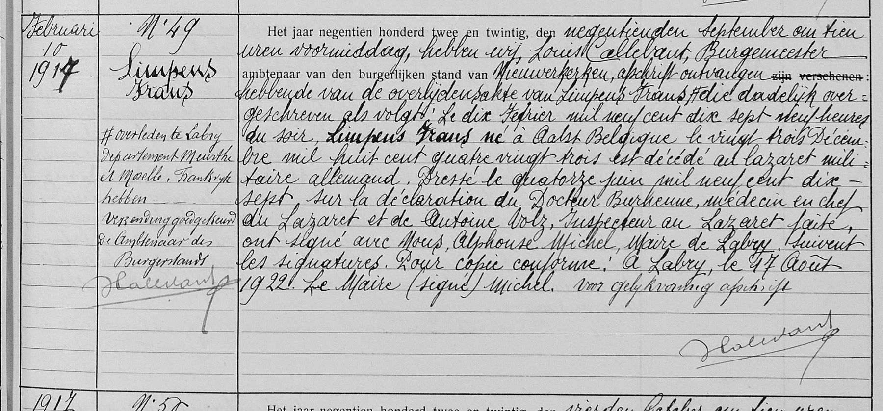 Overlijdensakte (Bron: Archives départementales de