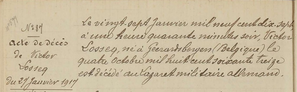 Overlijdensakte (Bron: Archives départementales de