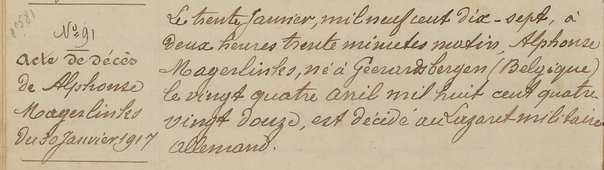 Overlijdensakte (Bron: Archives départementales de