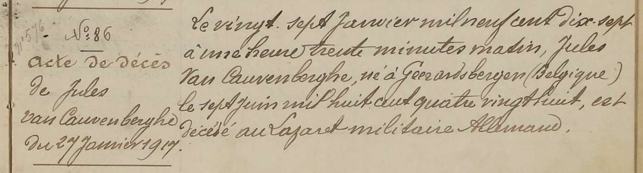 Overlijdensakte (Bron: Archives départementales de