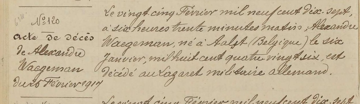 Overlijdensakte (Bron: Archives départementales de