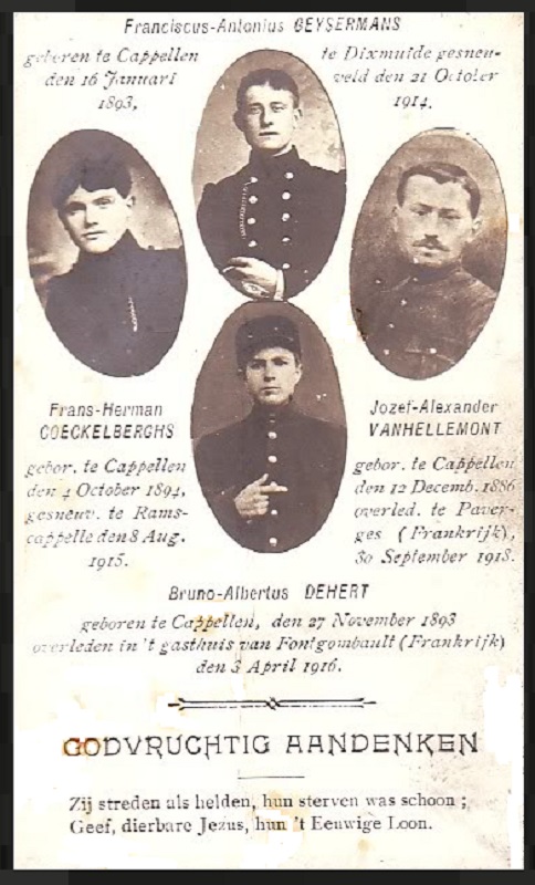 Aandenken aan de gesneuvelden van W.O. I van Kapellen, VB, BE
