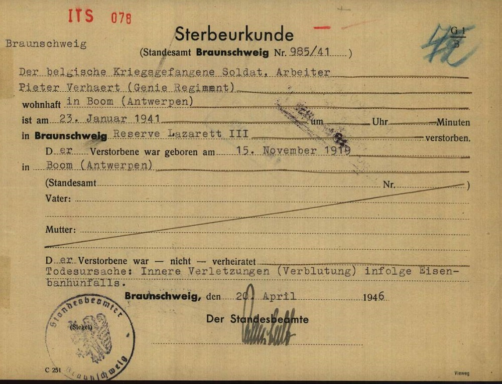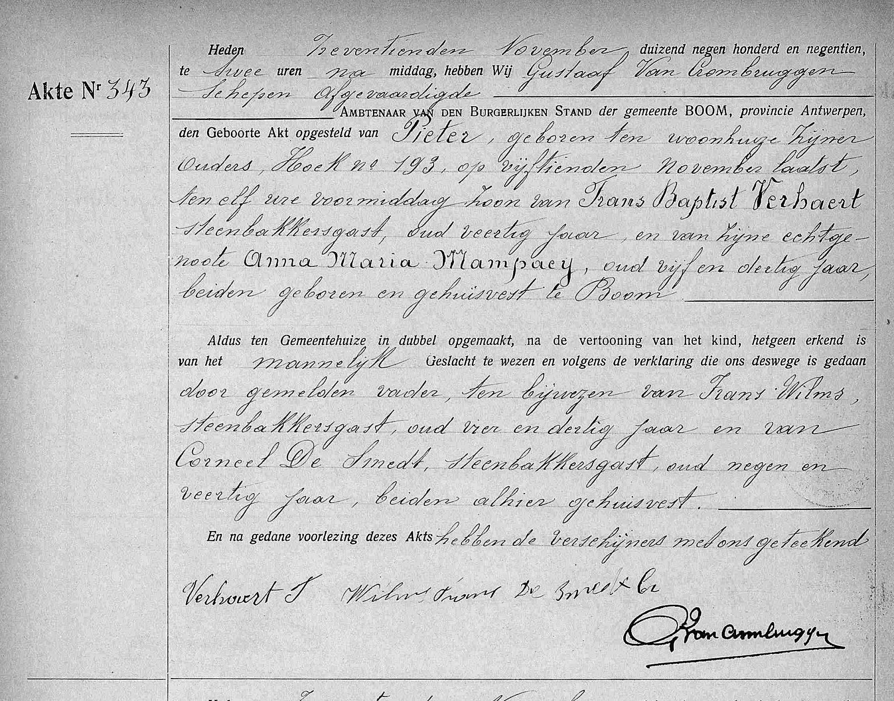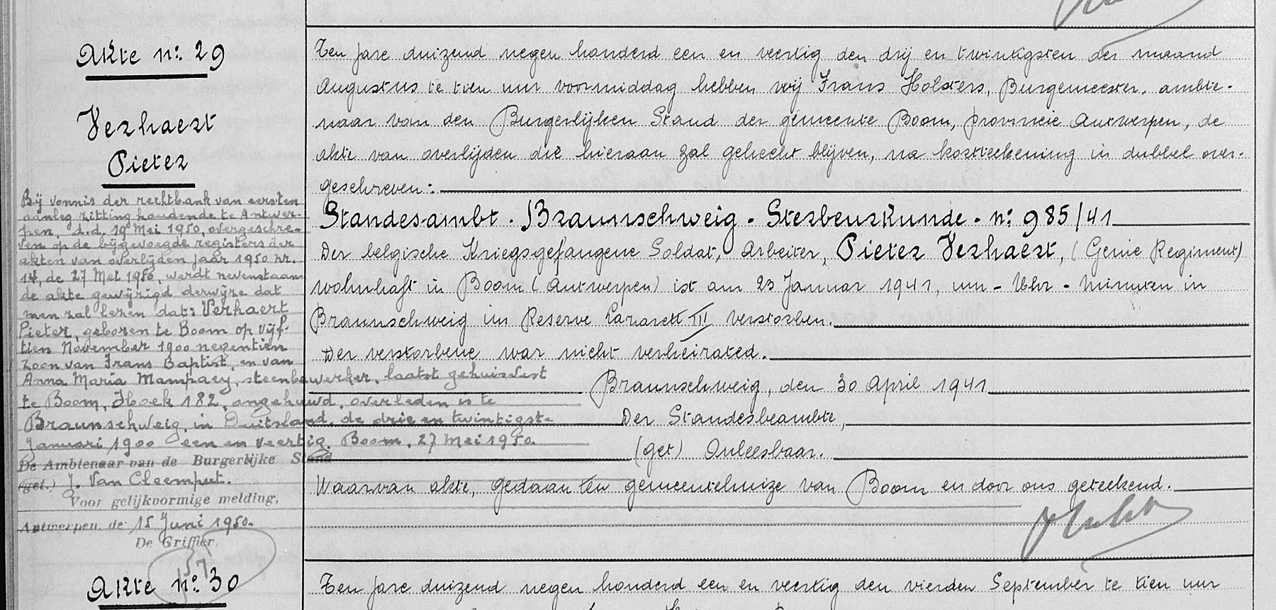 Overschrijving van overlijdensakte in de burgerlijke stand van Boom,