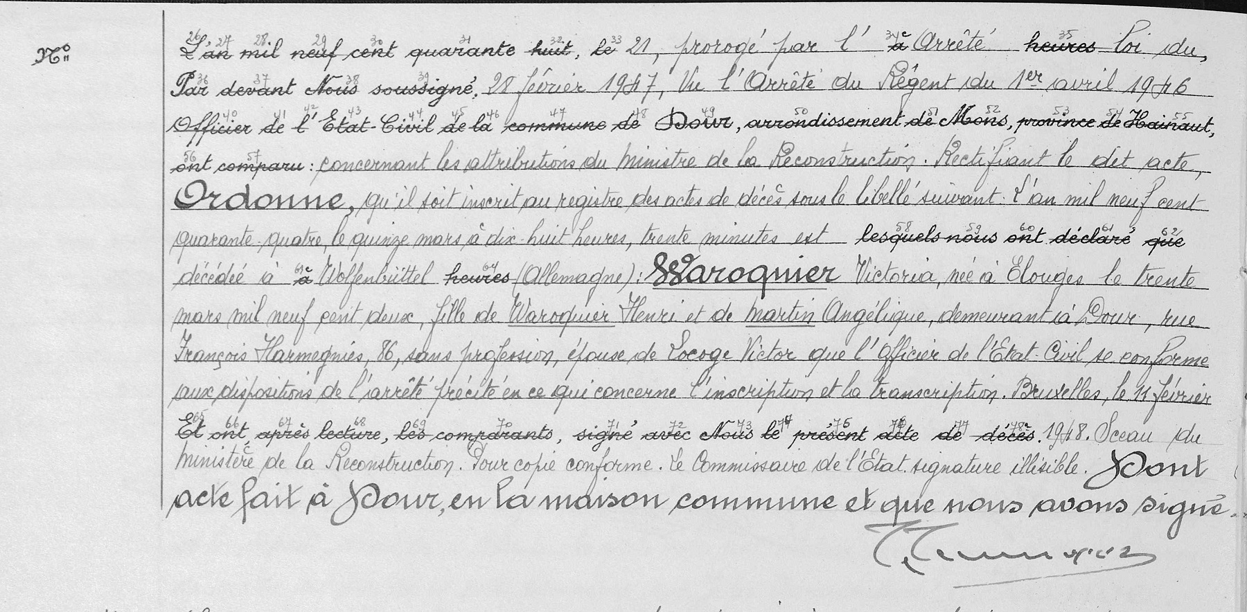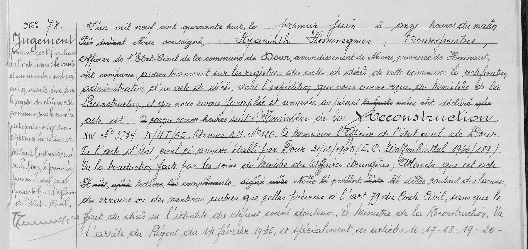 registres de l'état civil de Dour, HT, BE