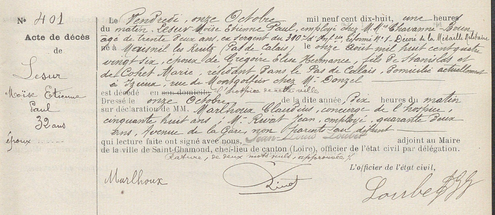 Acte de décès (Source: Archives départementales de la Loire, FR)
