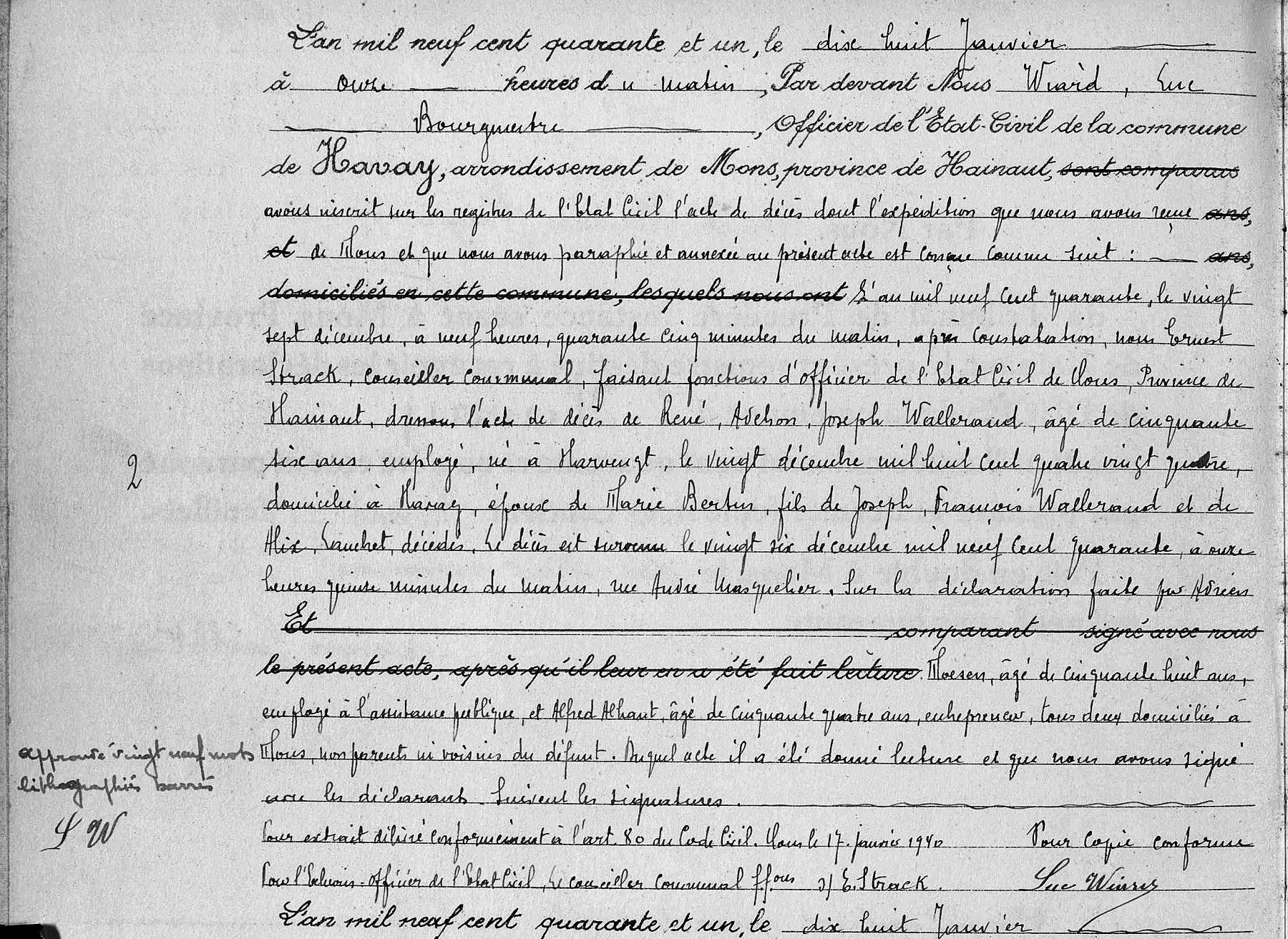 Transcription de l'acte de décès dans les registres de l'état civil