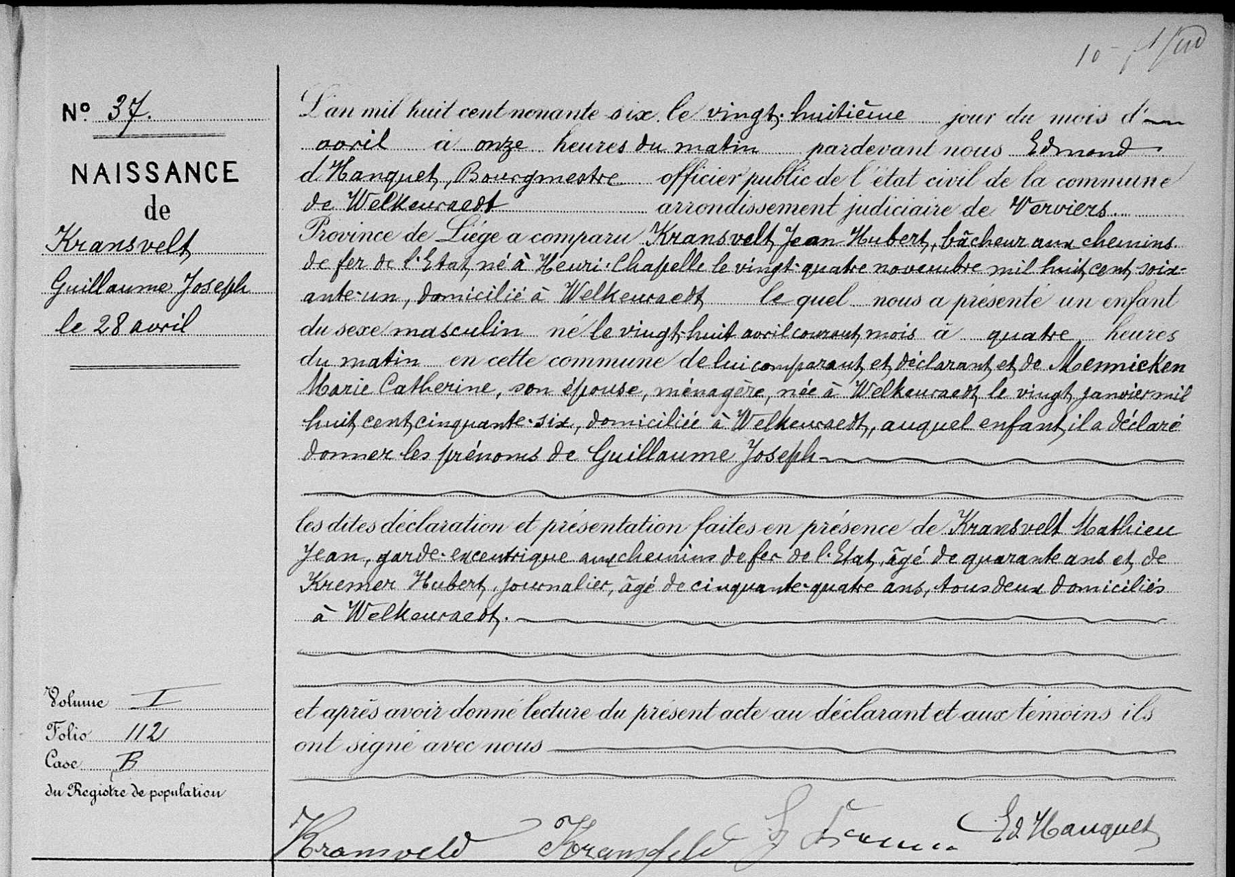 Acte de naissance (Source [358]) (Télécharger l'image pour la