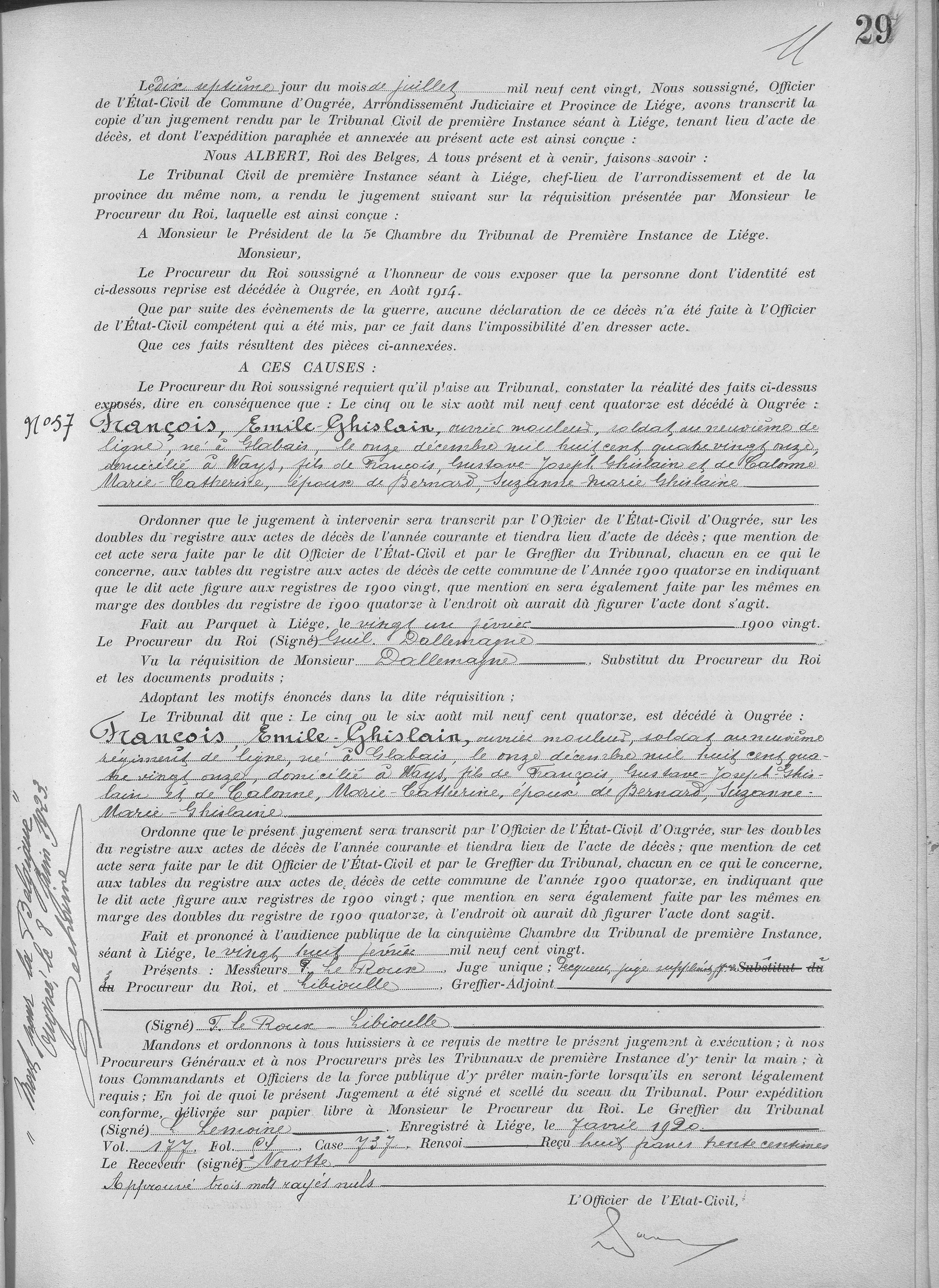 l'état civil de Ougrée, LG, BE