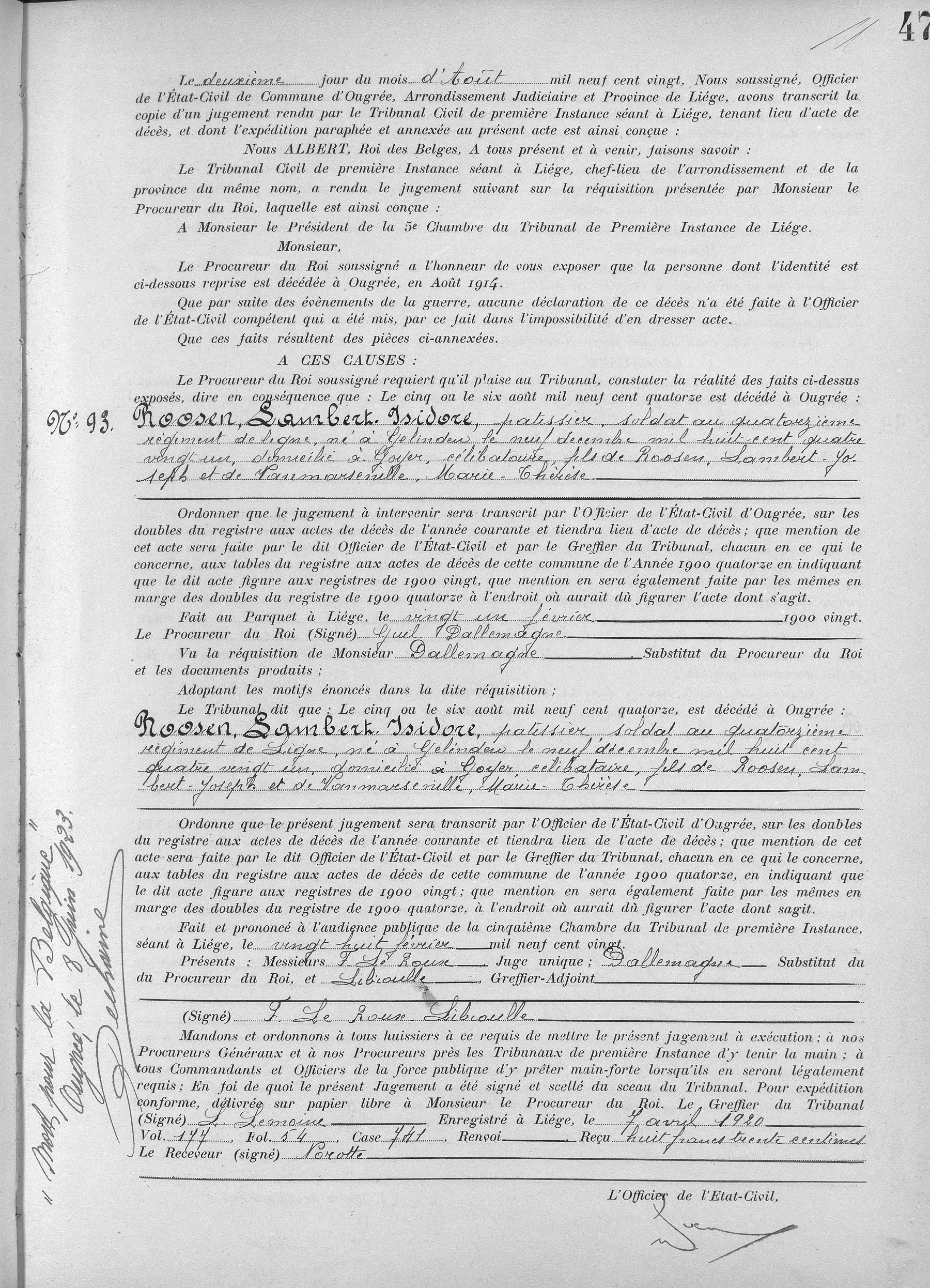 Overschrijving van gerechtelijke verklaring van overlijden in de