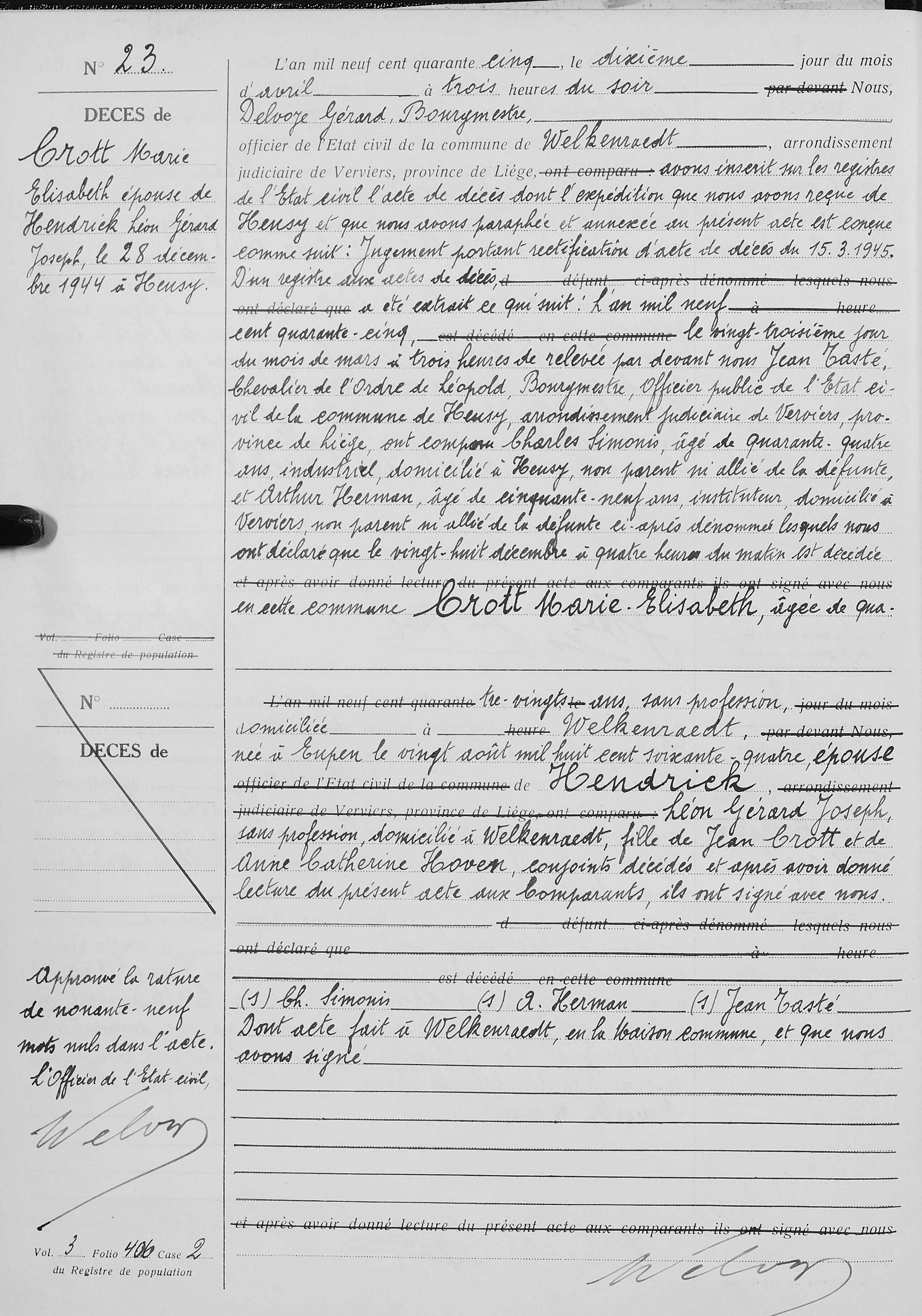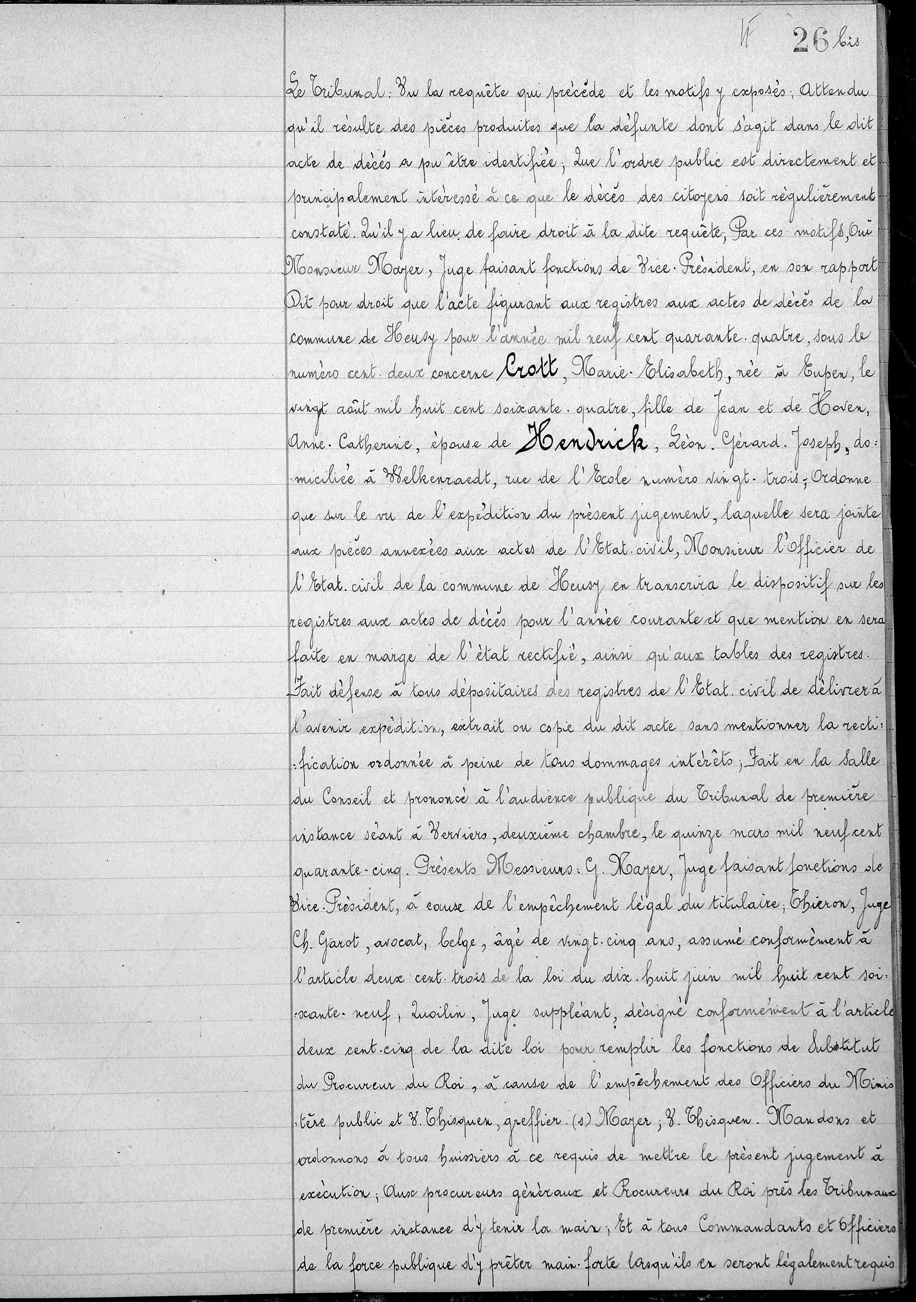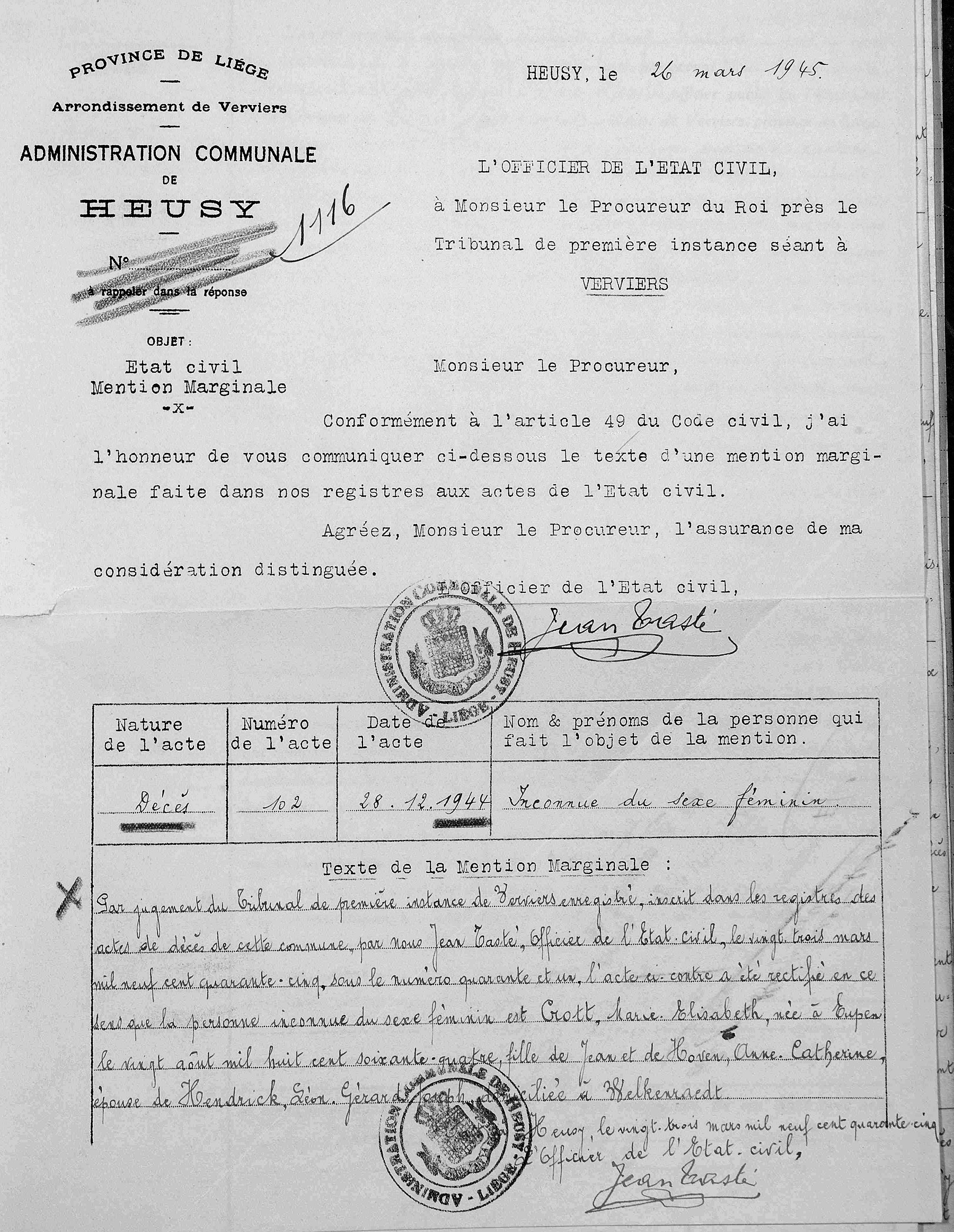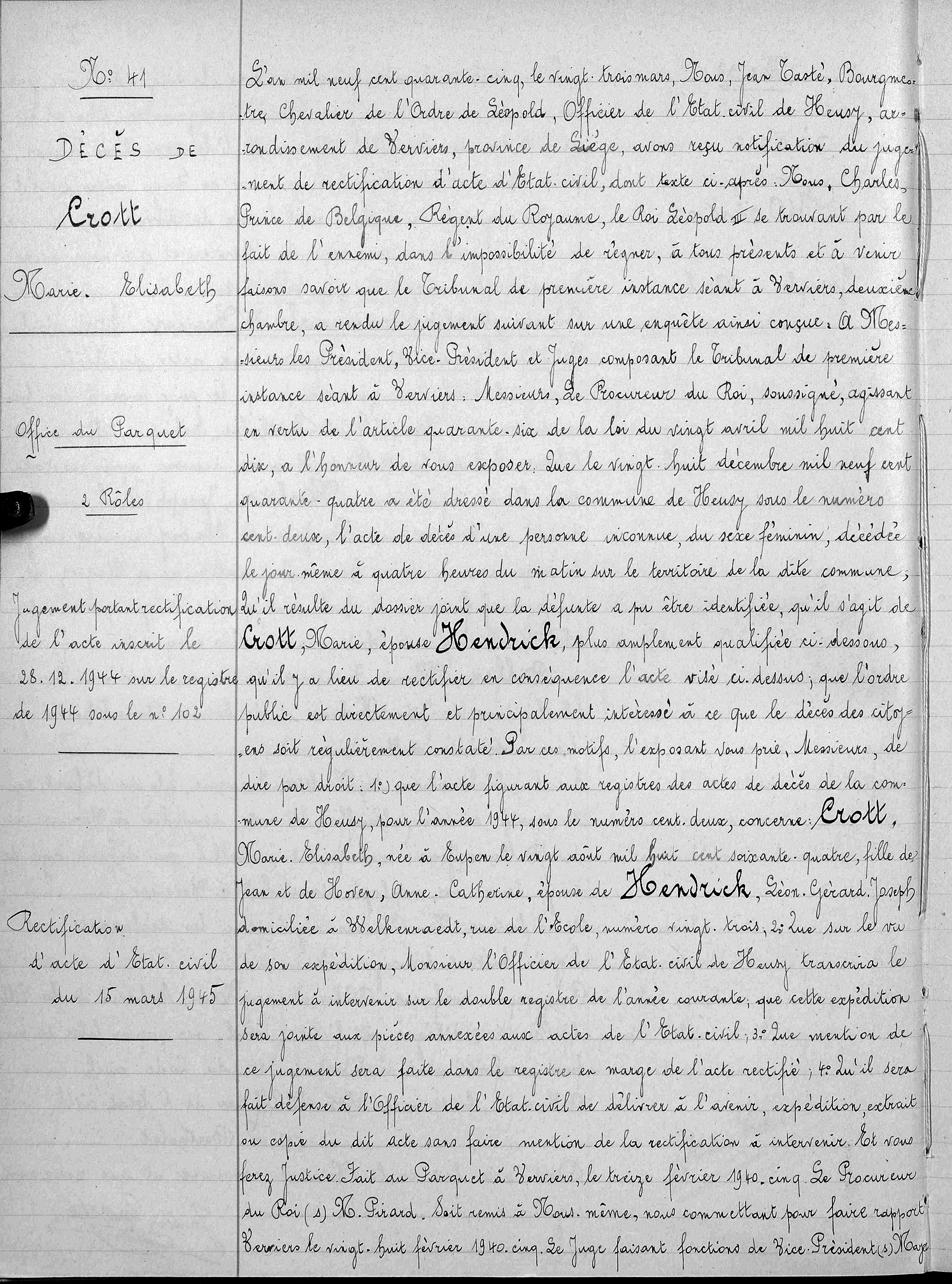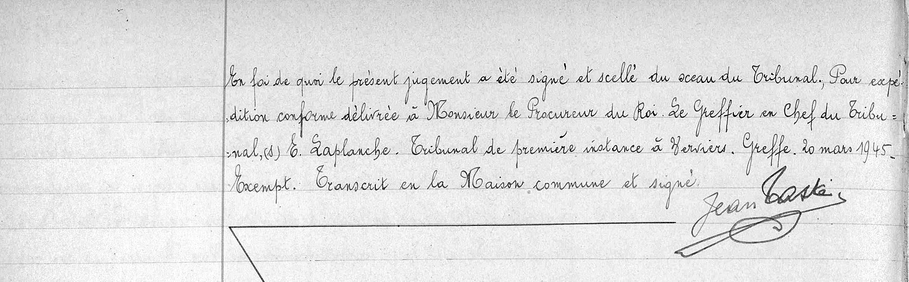 Copie de l'original du jugement rectificatif de décès (Source [358])