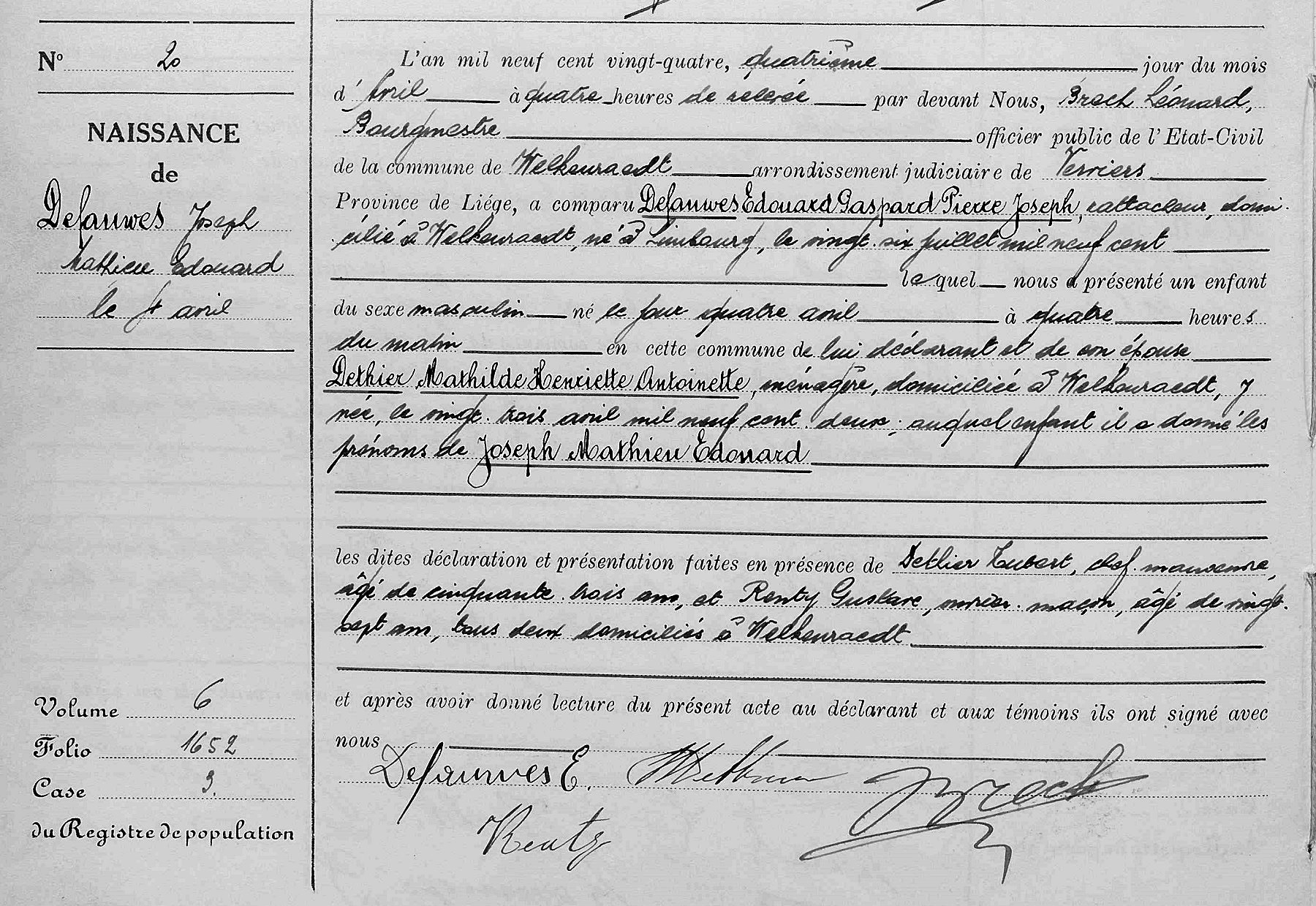 l'état civil de Welkenraedt, LG, BE (Source [358])