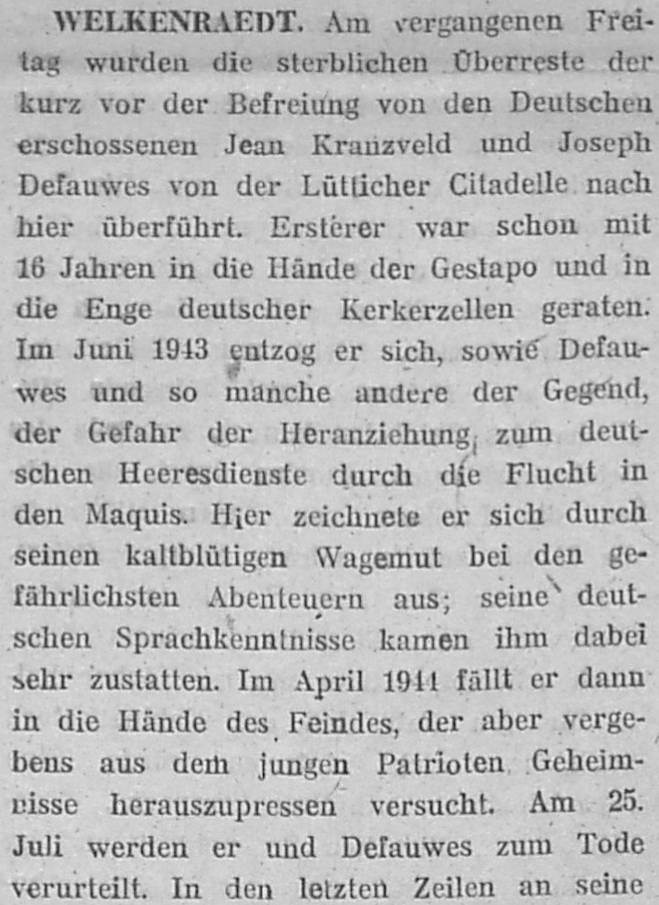 Le cénotaphe de Joseph DEFAUWES est le premier en partant de la
