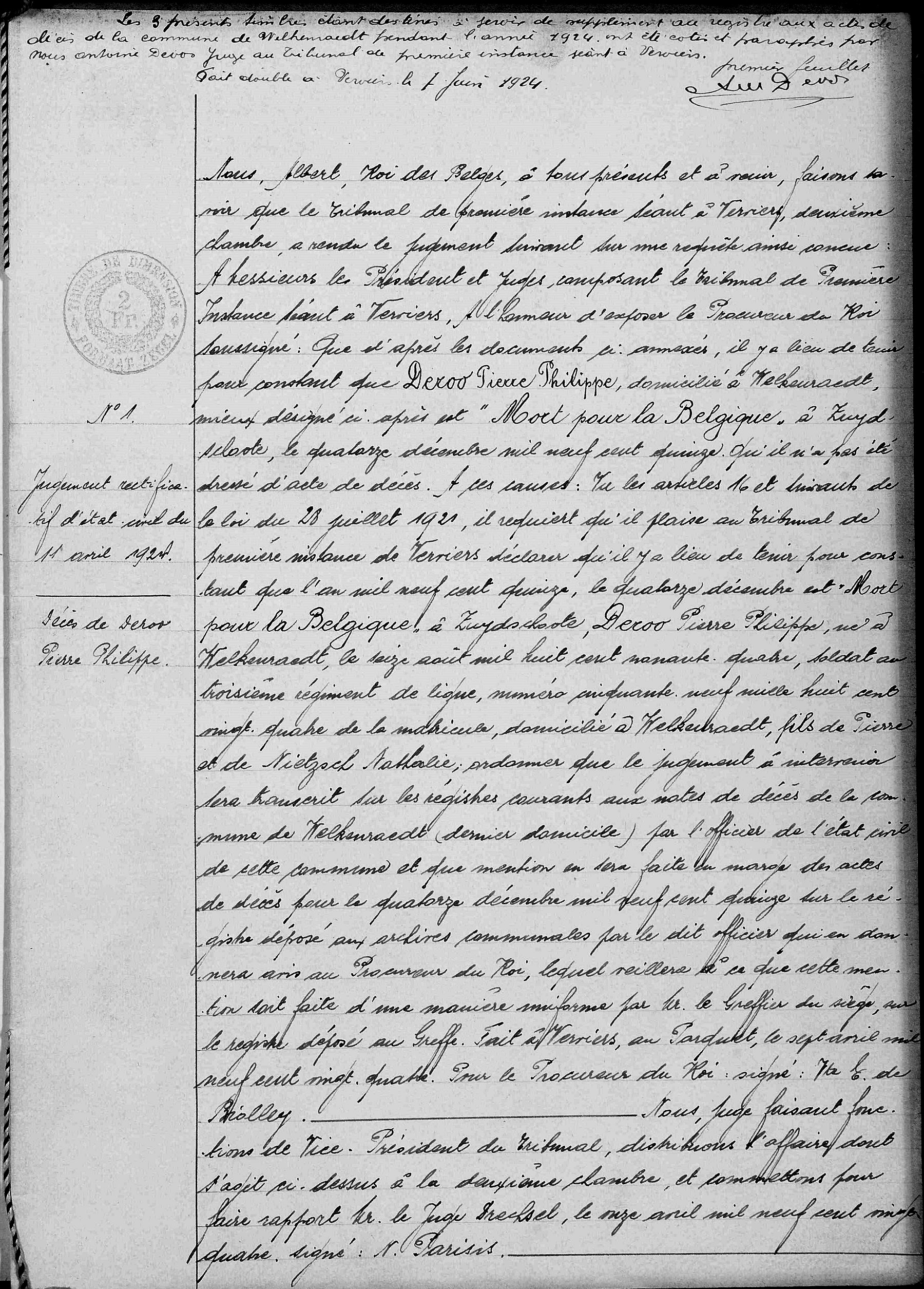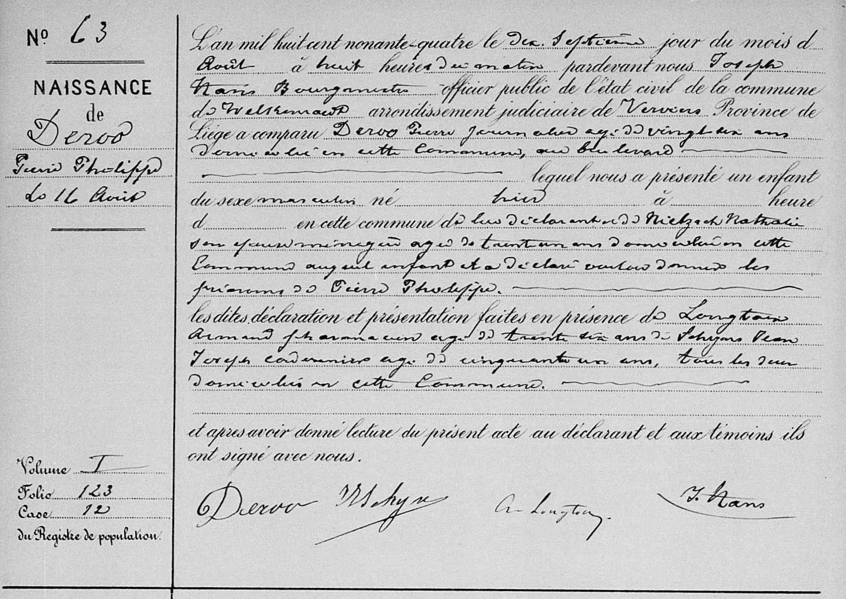 l'état civil de Welkenraedt, LG, BE