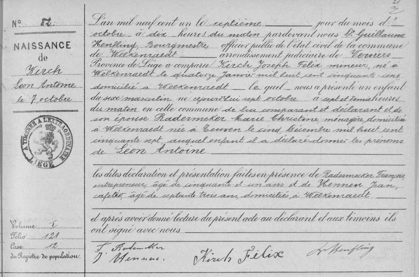 Acte de naissance (Source [358]) (Télécharger l'image pour la