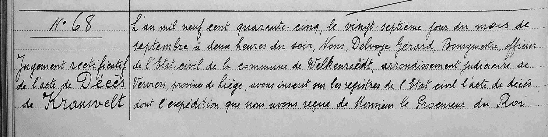 Transcription d'un jugement rectificatif de l'acte de décès dans les