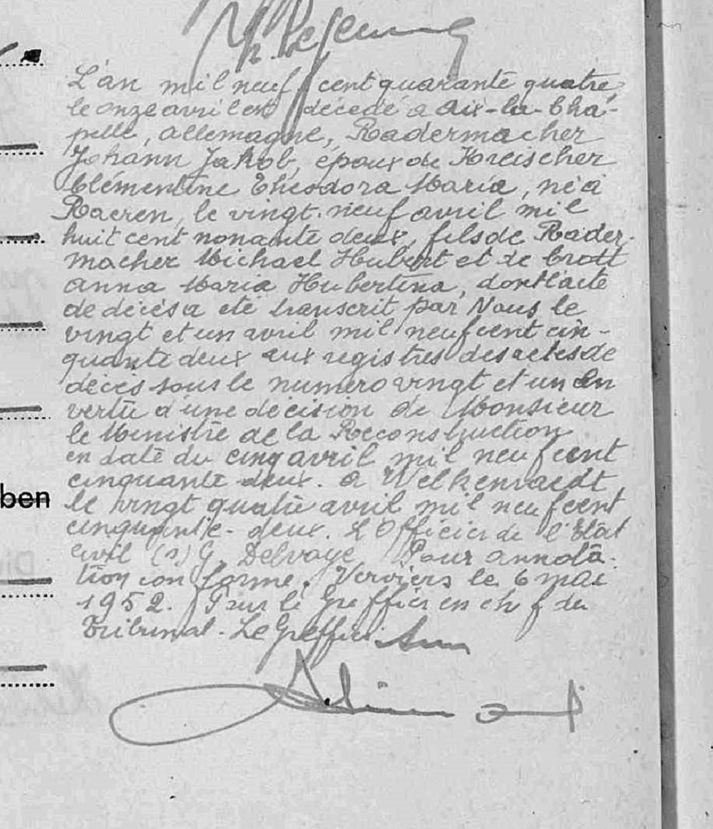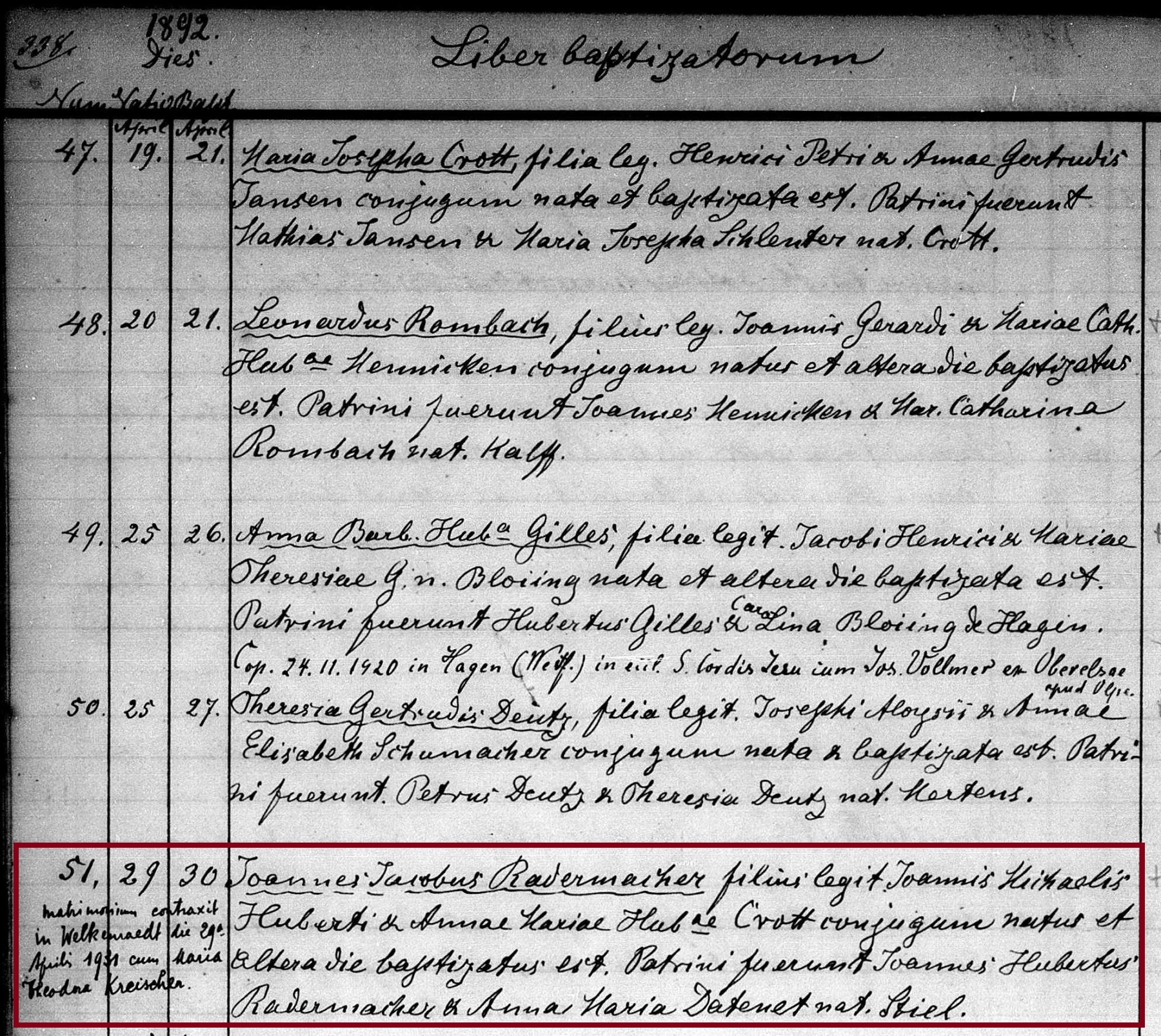 Acte de baptême à Raeren, LG, BE (Source [358]) (Télécharger l'image pour la