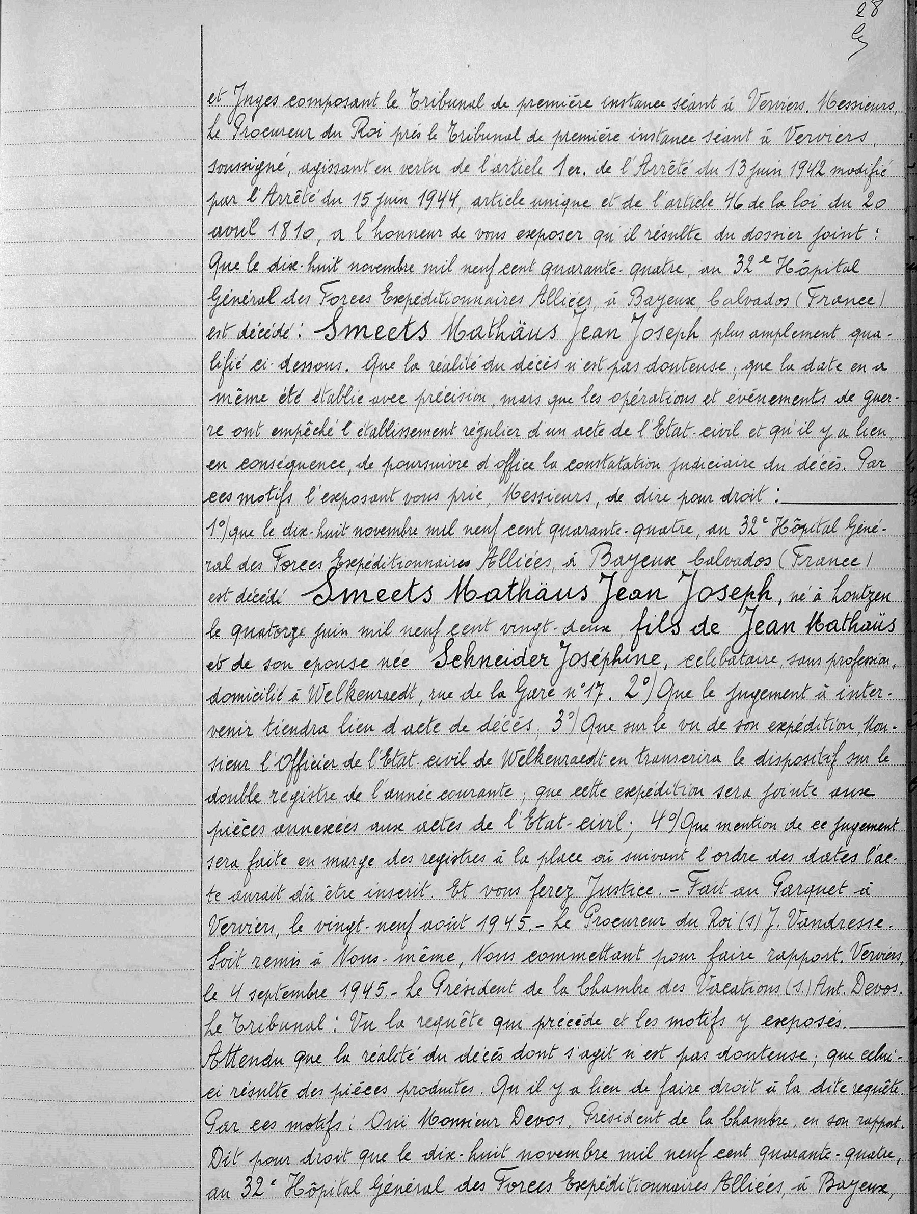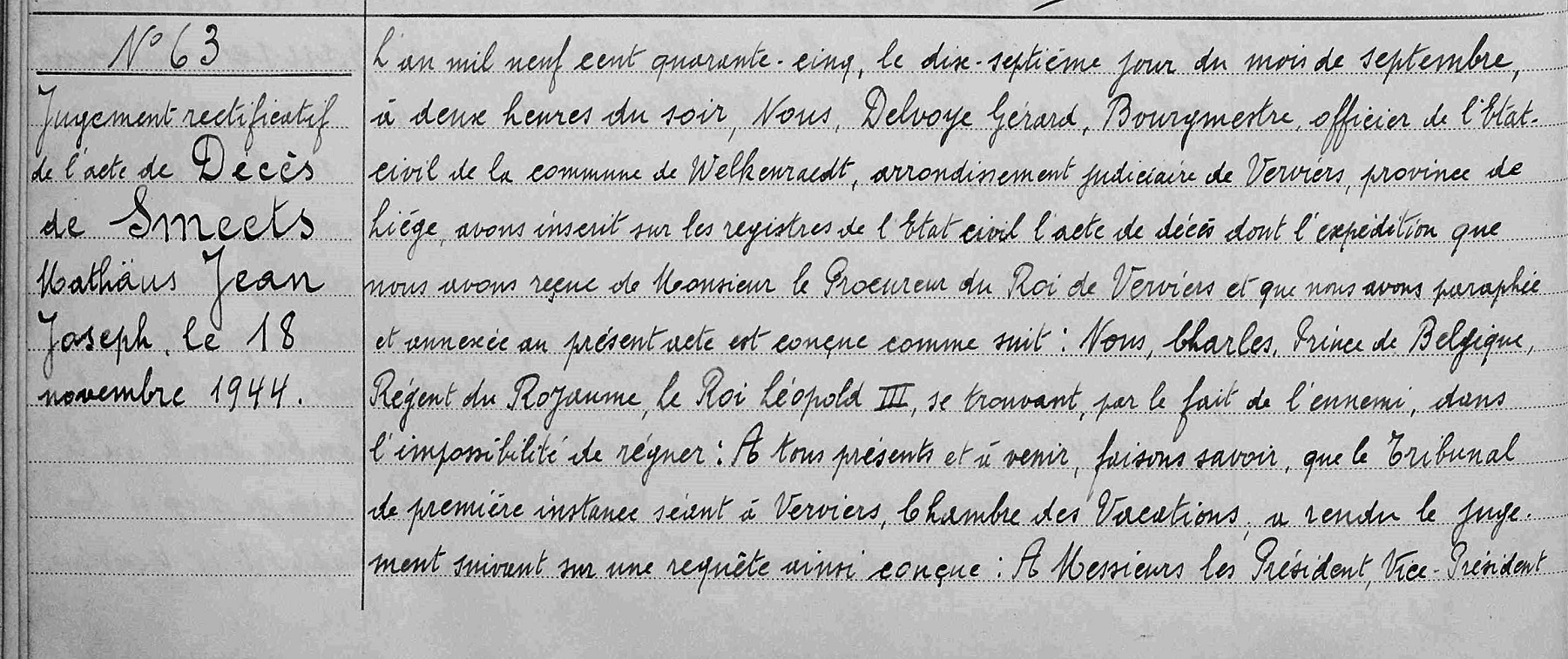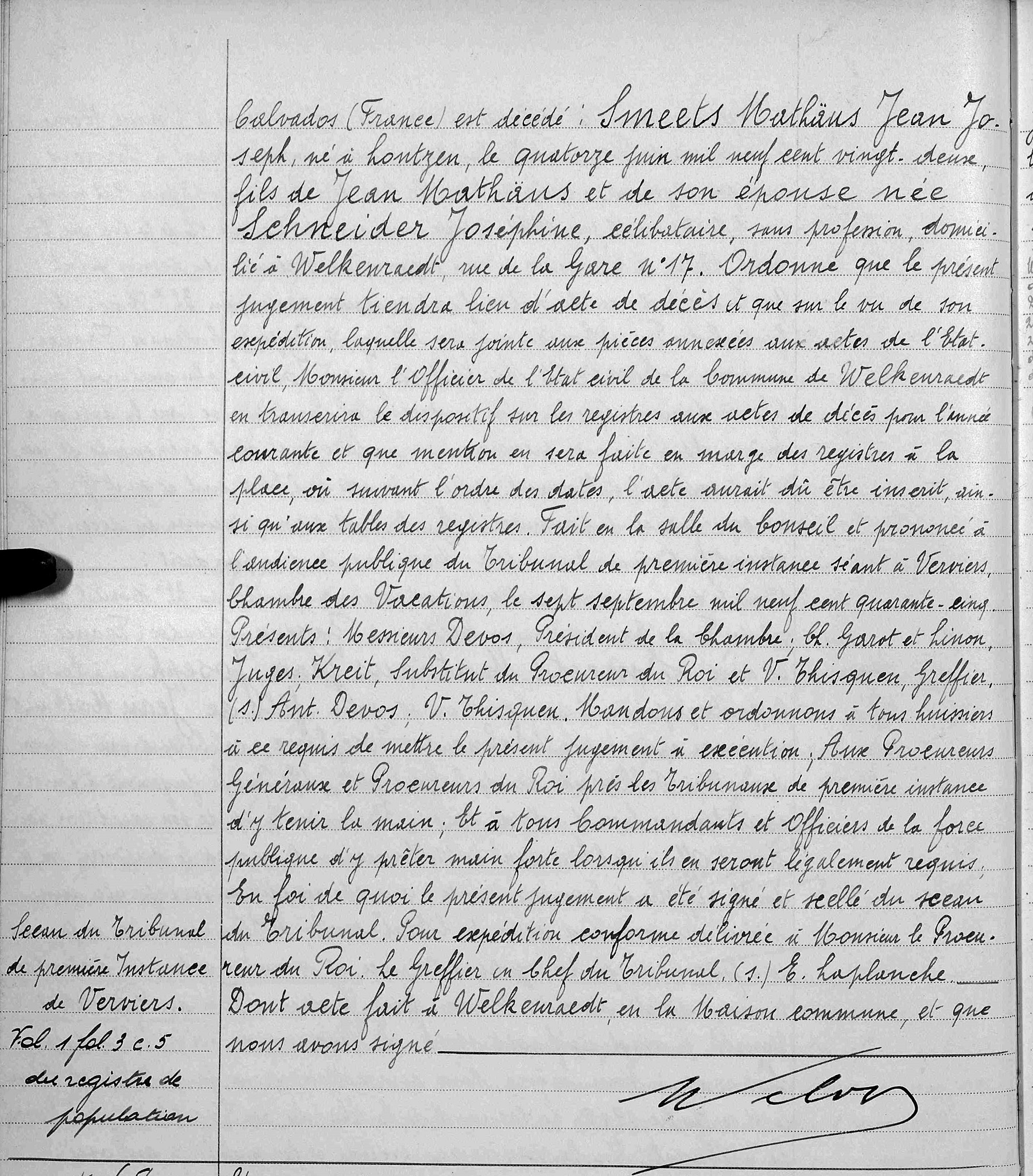 Transcription du jugements déclaratif de décès dans les registres de l'état civil de
