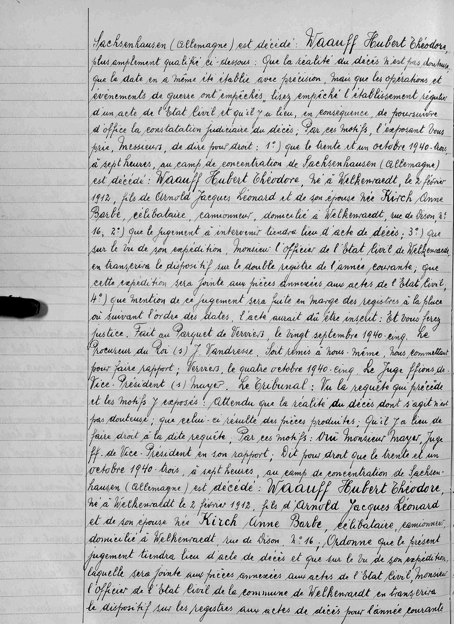 Transcription de l'acte de décès dans les registres de l'état civil