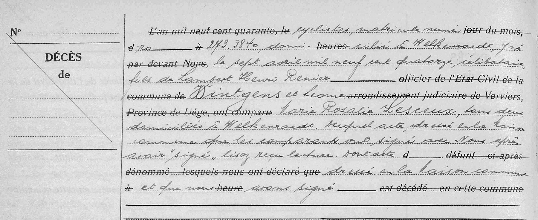 Transcription de l'acte de décès dans les registres de l'état civil