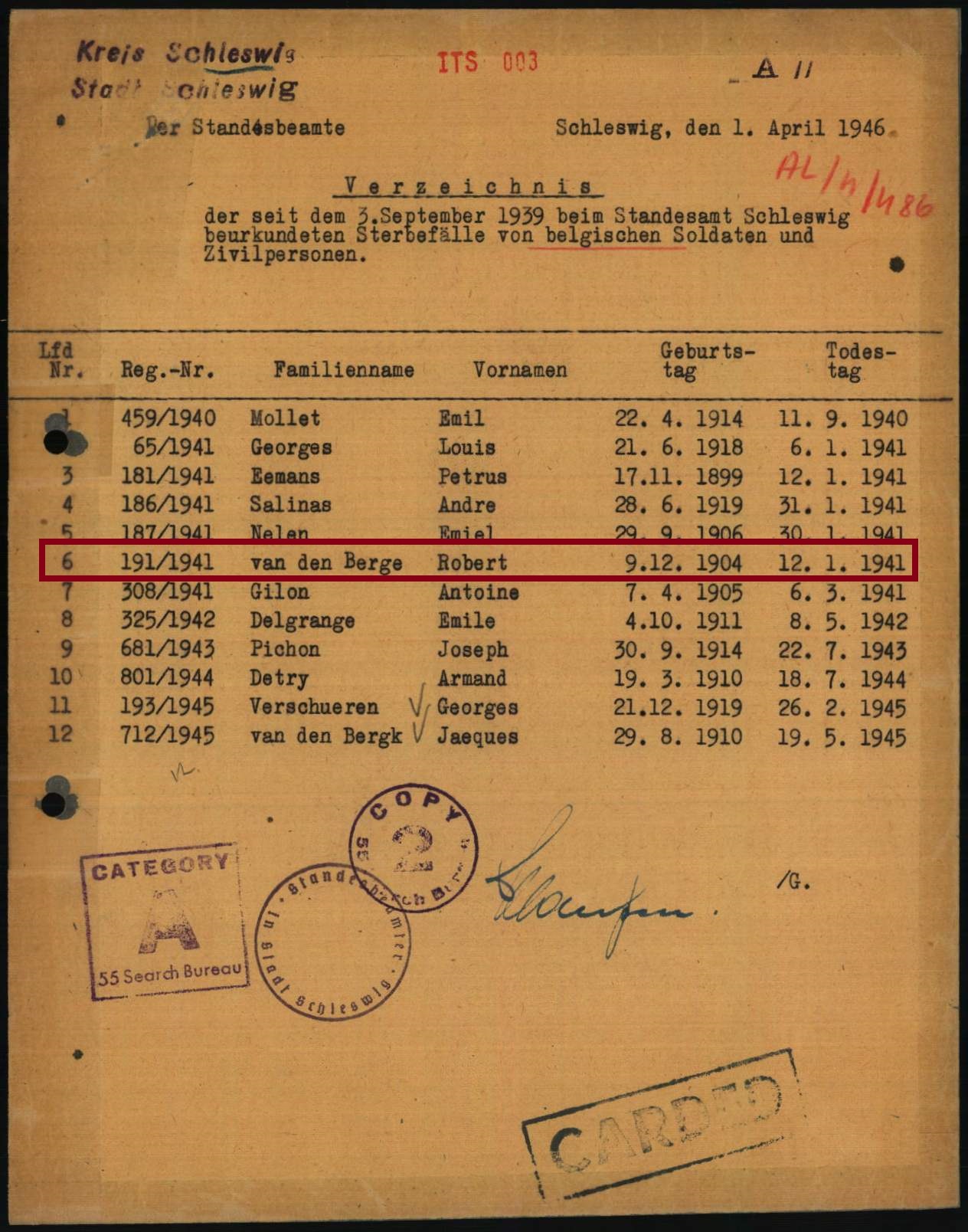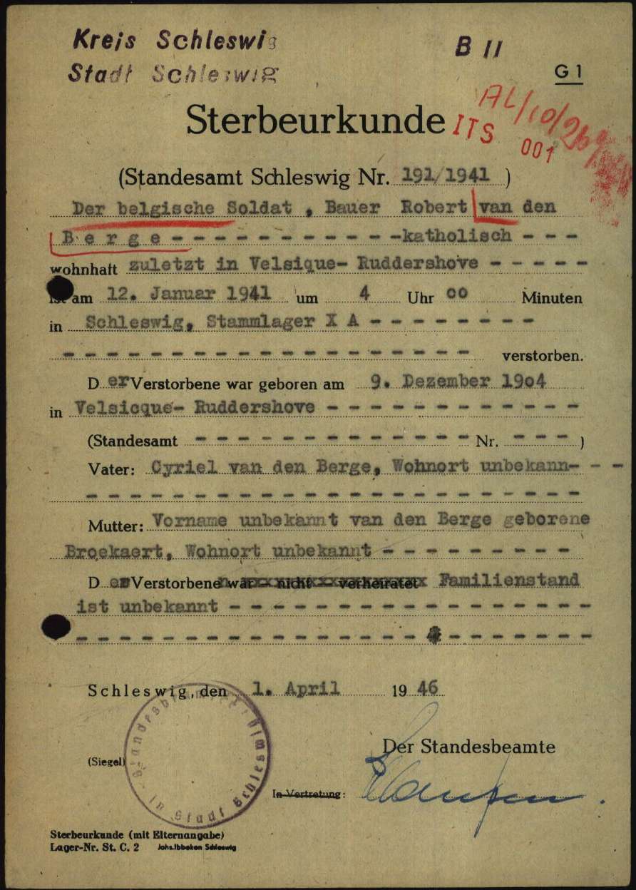 Overlijdensakte te Schleswig, Sleeswijk-Holstein, DE