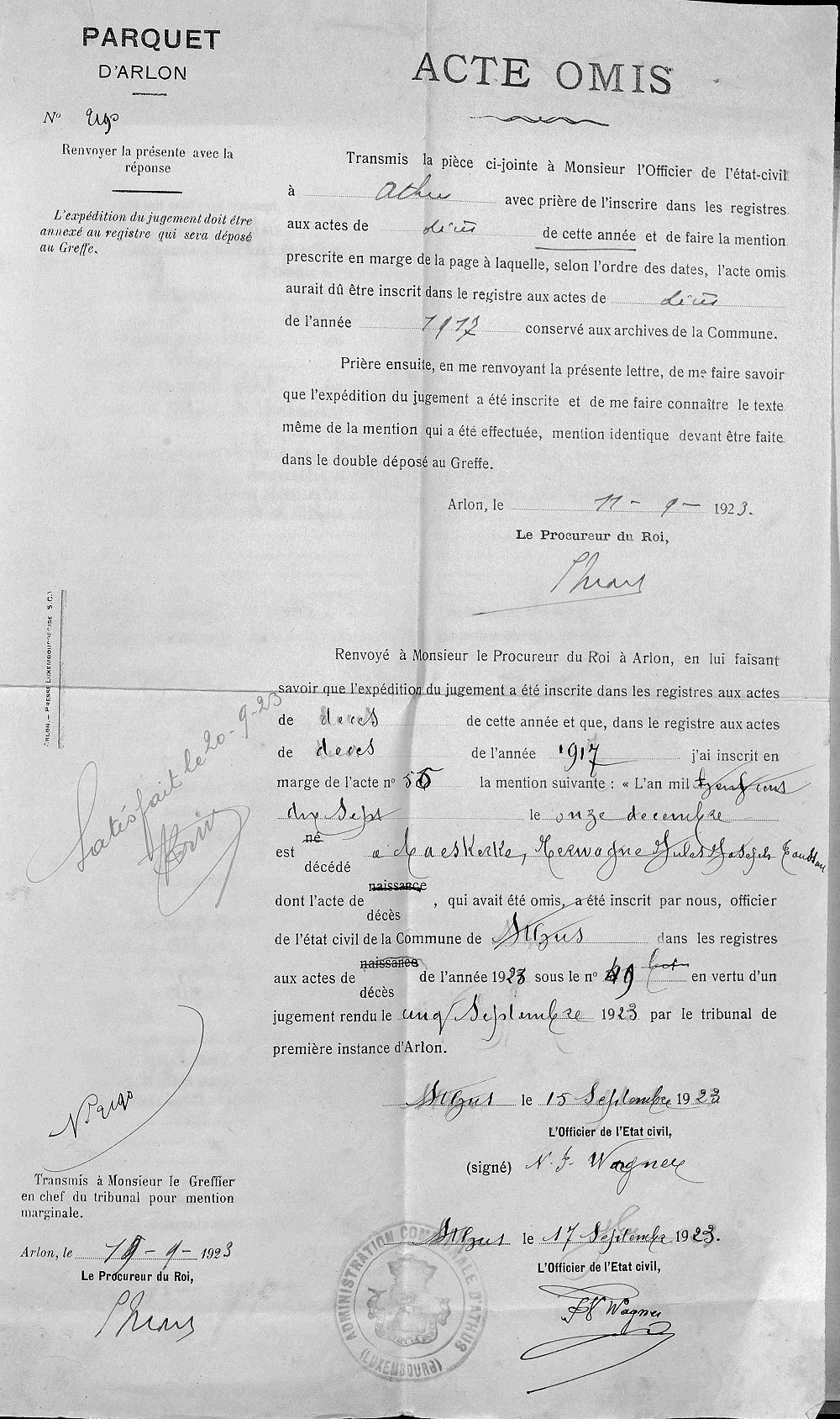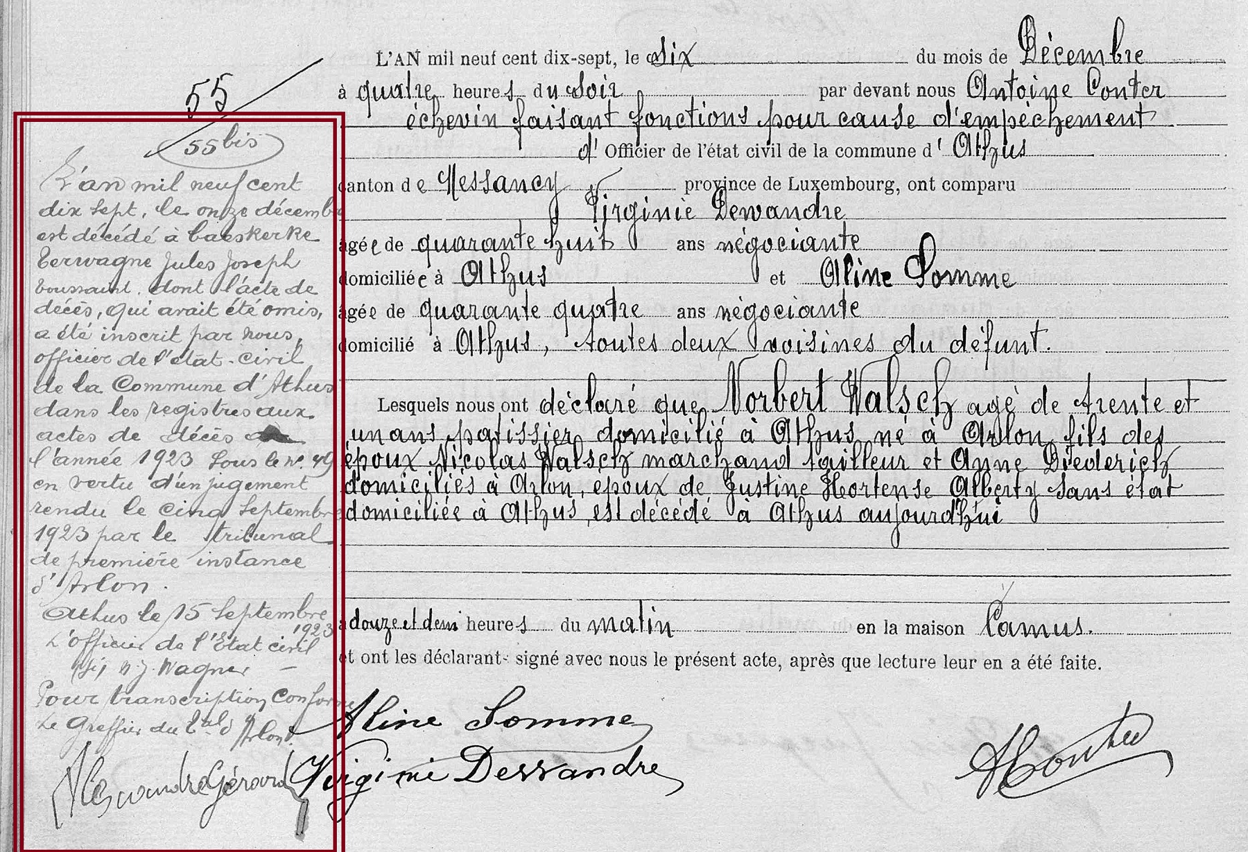 l'état civil de Athus, LU, BE (Source [358]