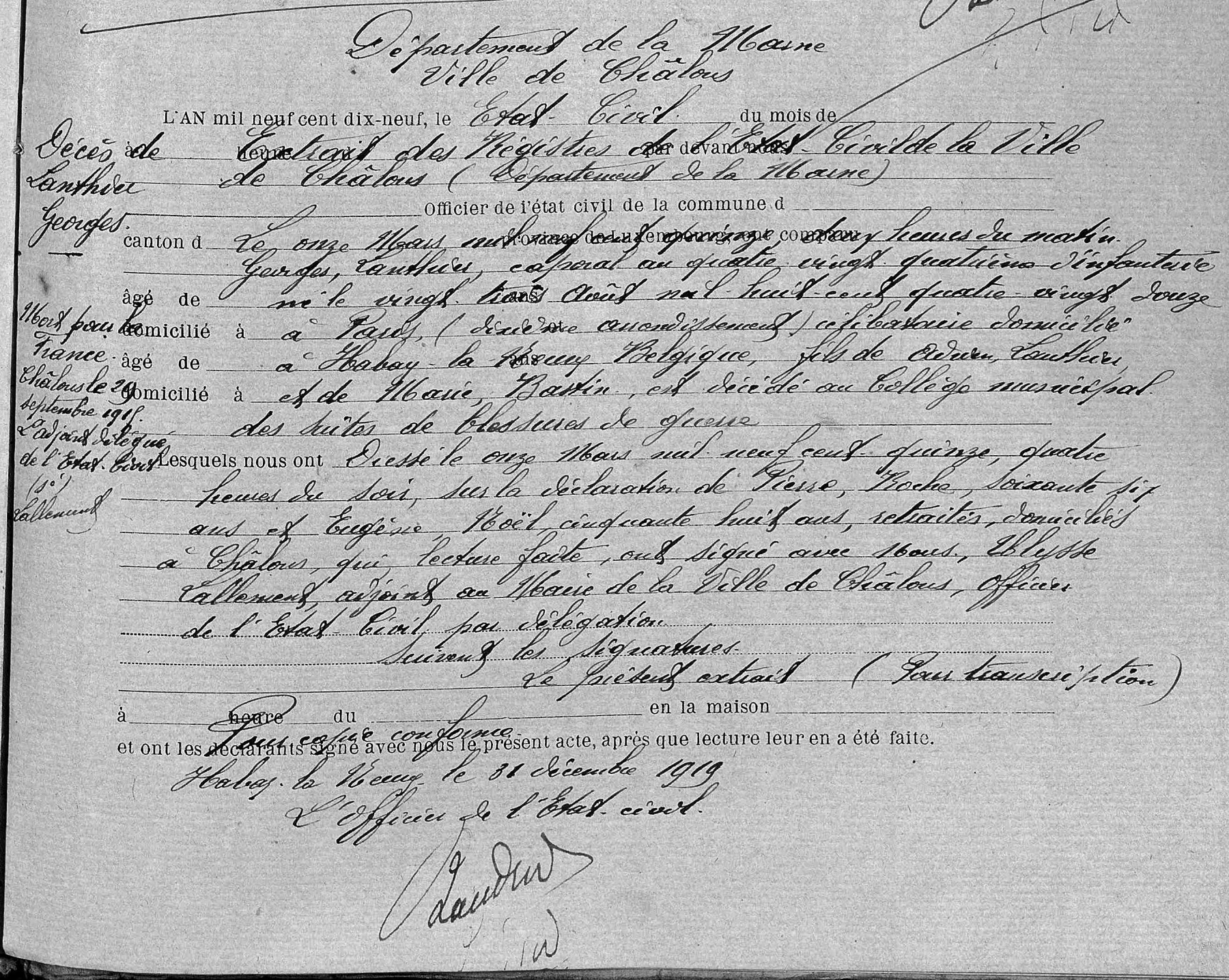 Transcription de l'acte de décès dans les registres de l'état civil