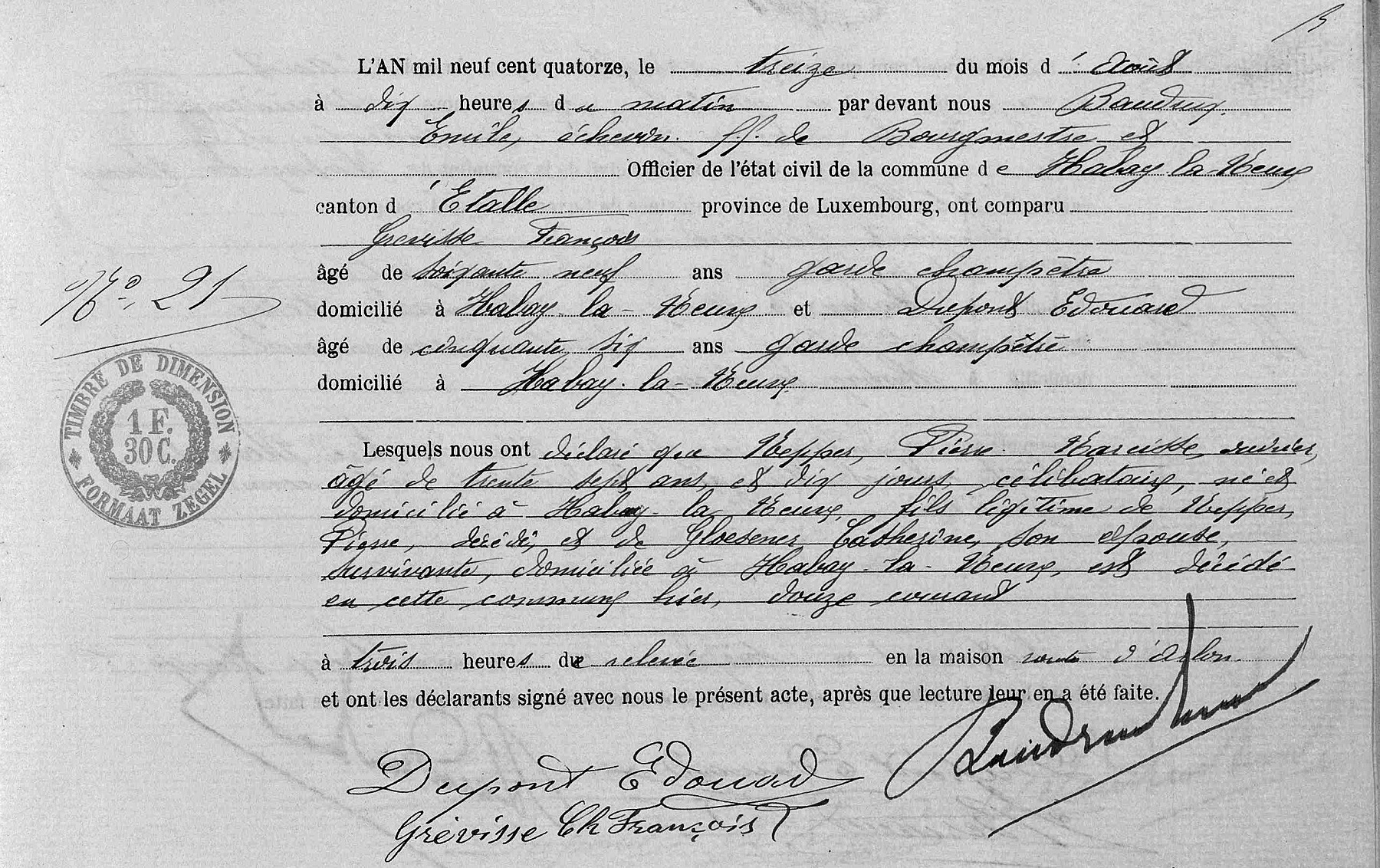 DU 12 AOÛT 1914 À L'ÂGE DE 37 ANS
