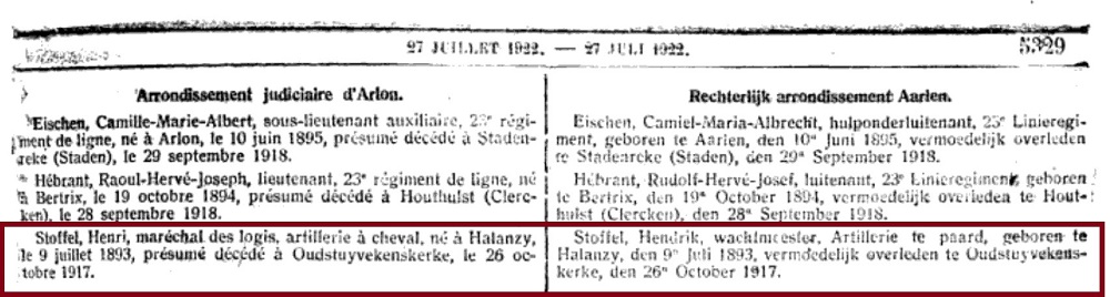 Lieu de première inhumation de Henri STOFFEL (Source [517])