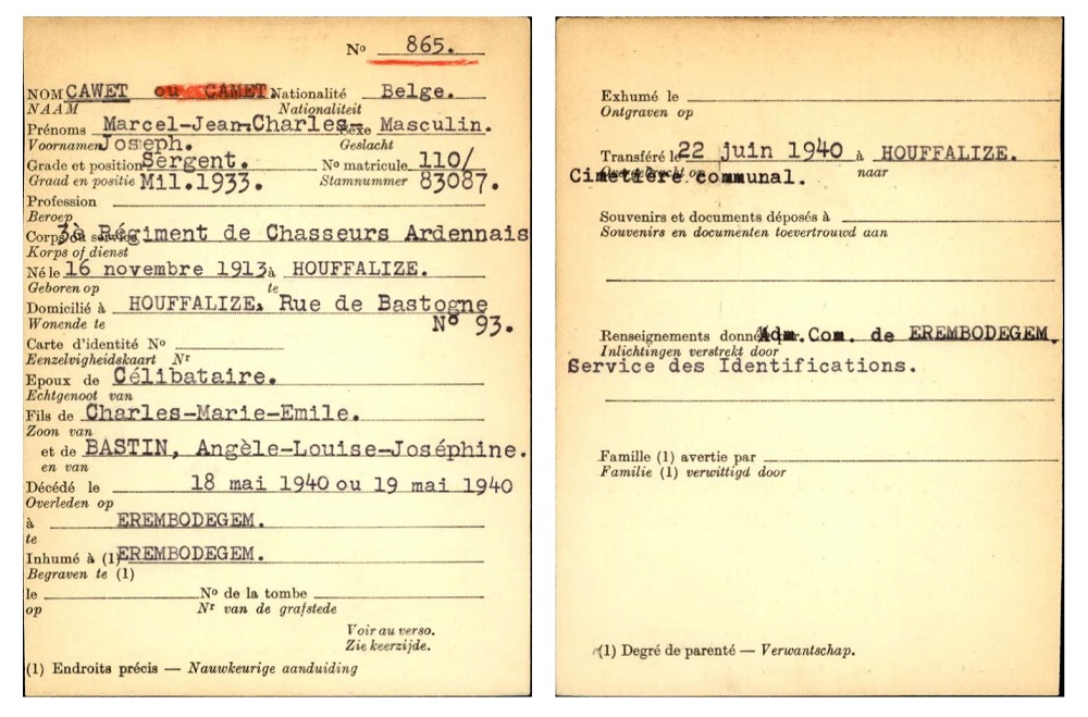 TOMBÉ À ALOST LE 19 MAI 1940