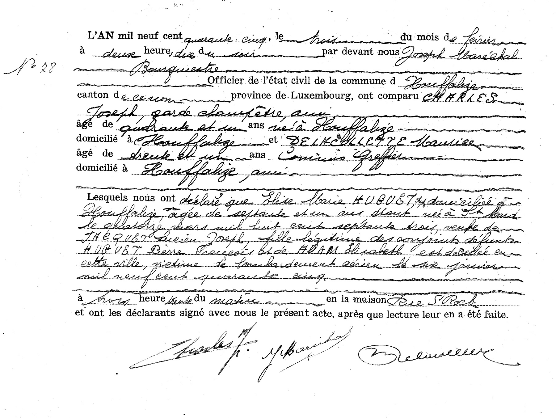 Acte de décès (Source: Michel RONGVAUX) (Télécharger l'image pour la