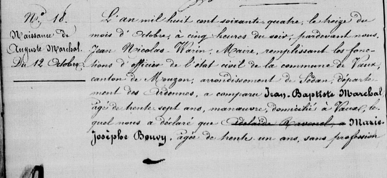 Acte de naissance (Source: Archives départementales des Ardennes,