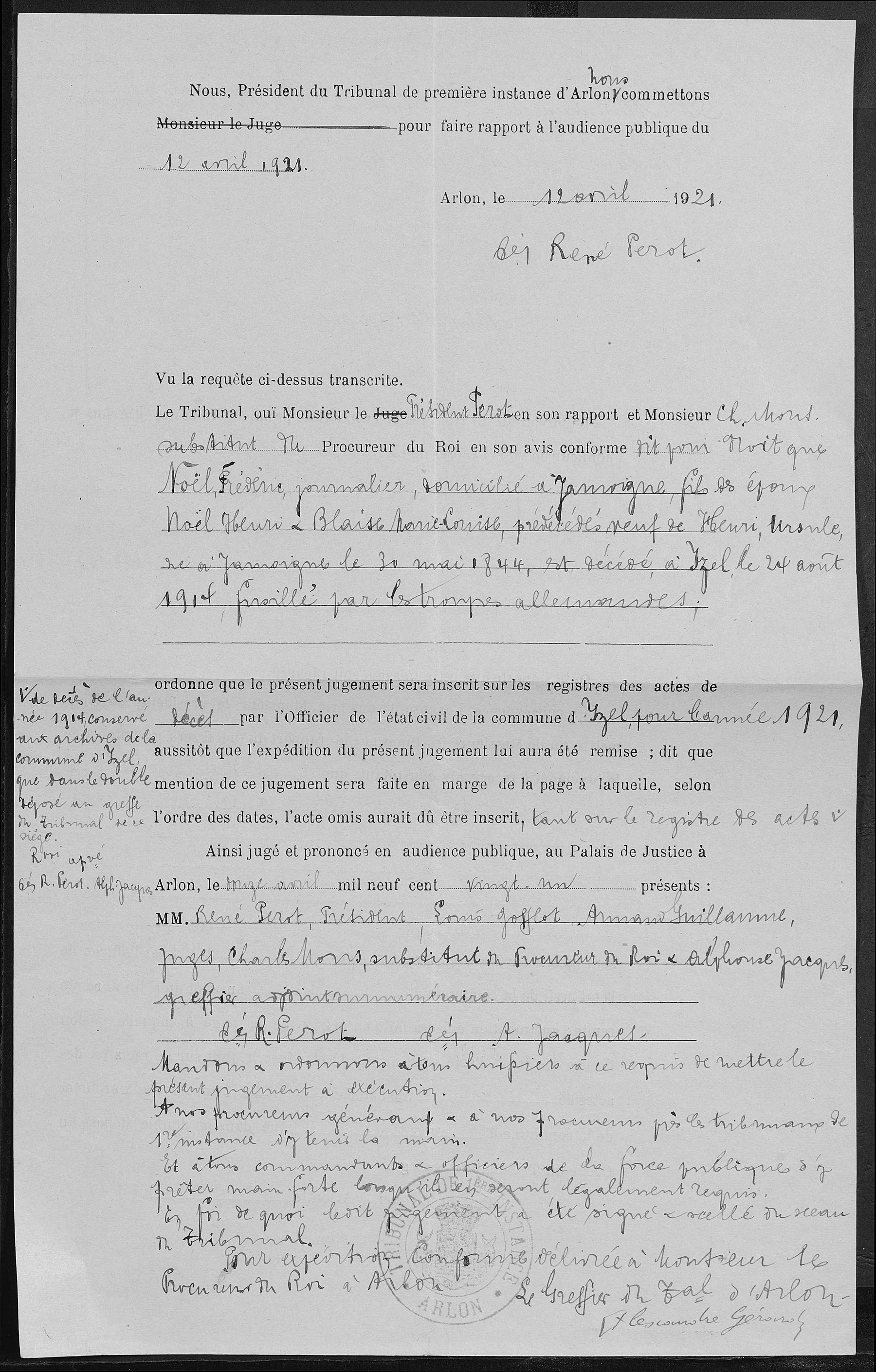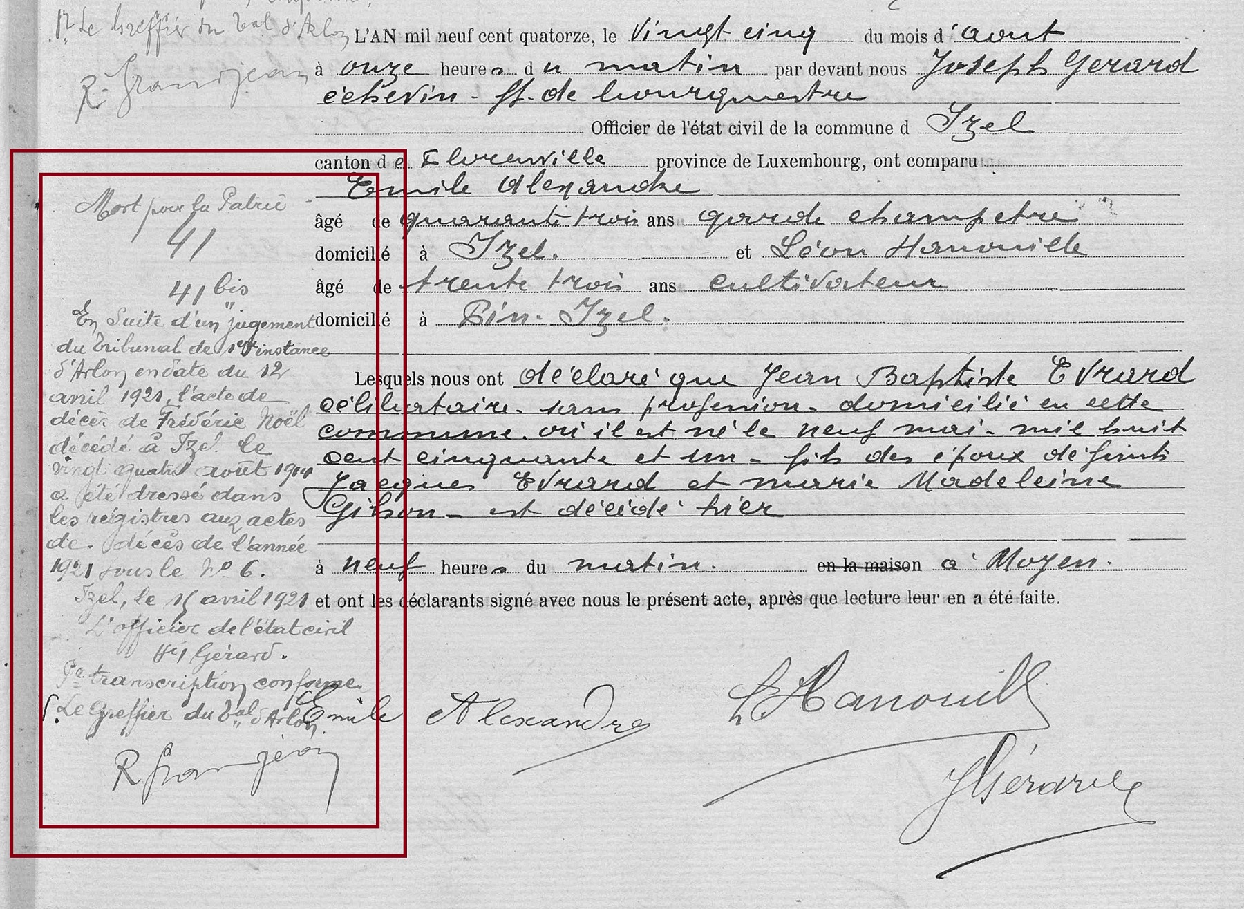 dans les registres de l'état civil de Izel, LU, BE (Source [358])