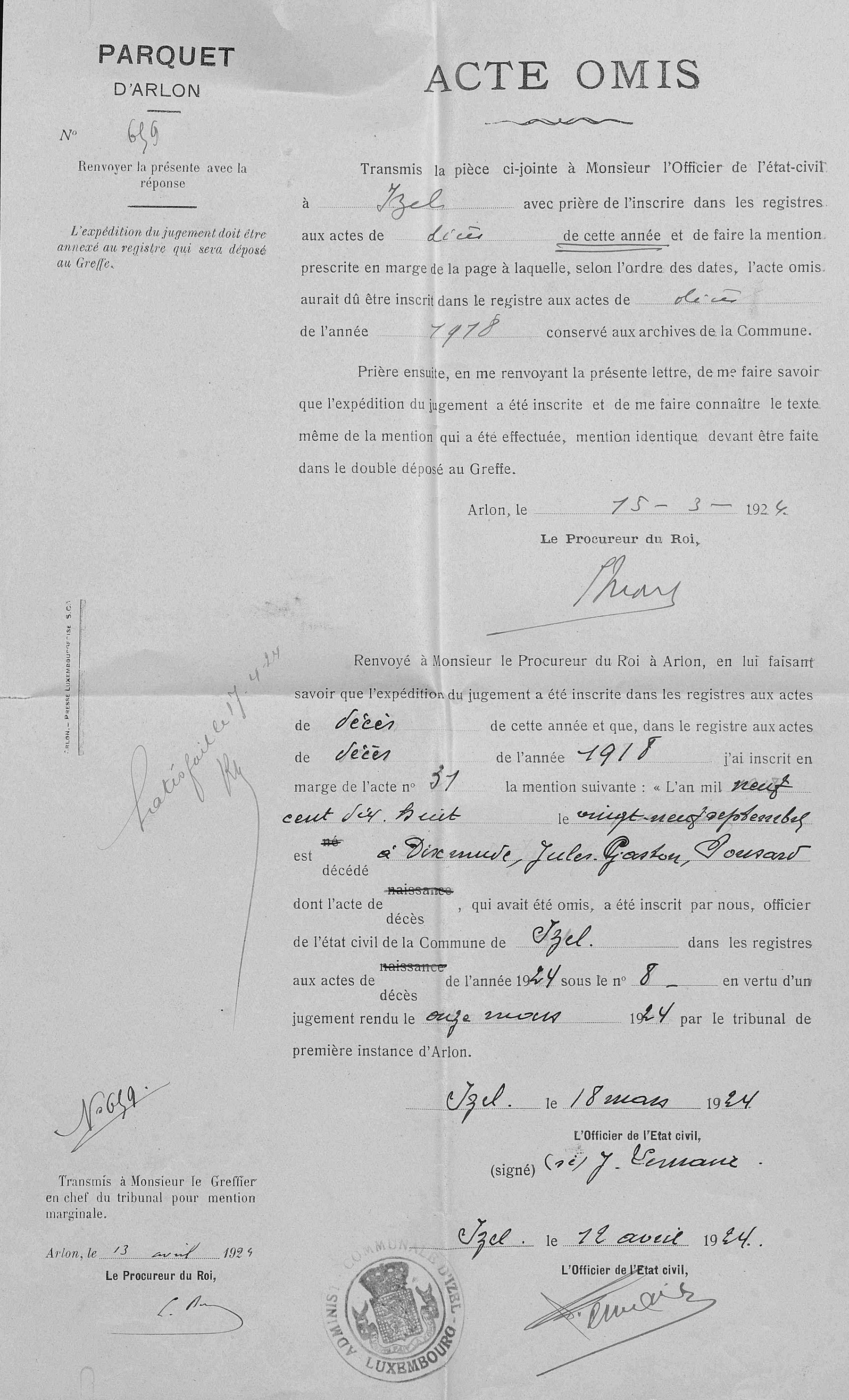 l'état civil de Izel, LU, BE (Source [358])