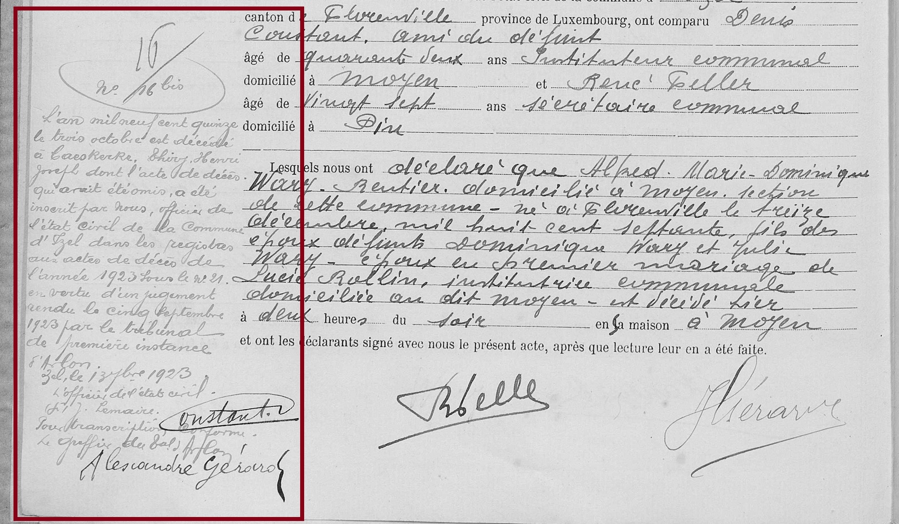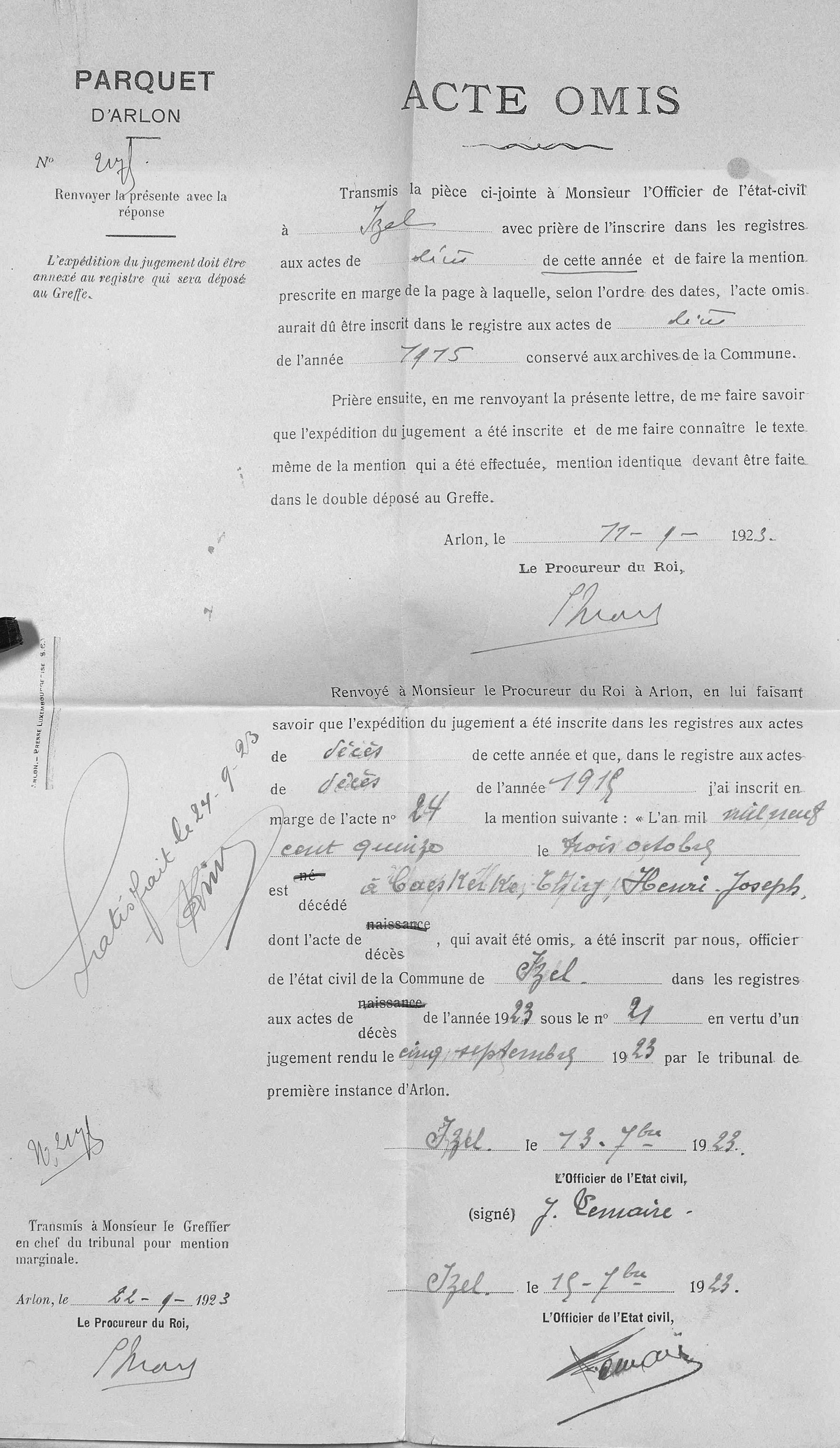 Inscription décès dans les registres de l'état civil de Izel, LU, BE