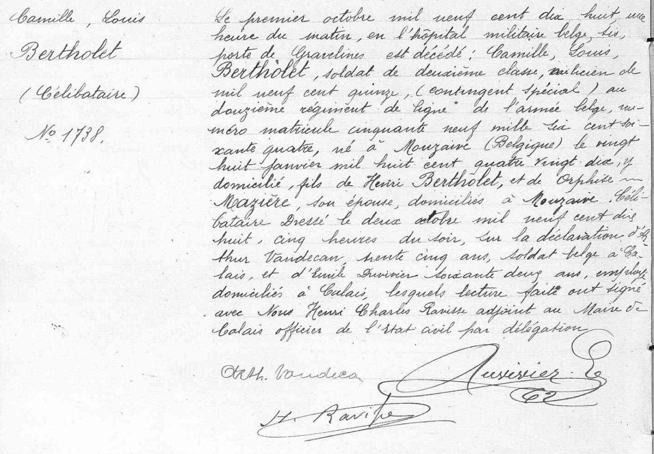Acte de décès (Source: Archives départementales du Pas-de-Calais)