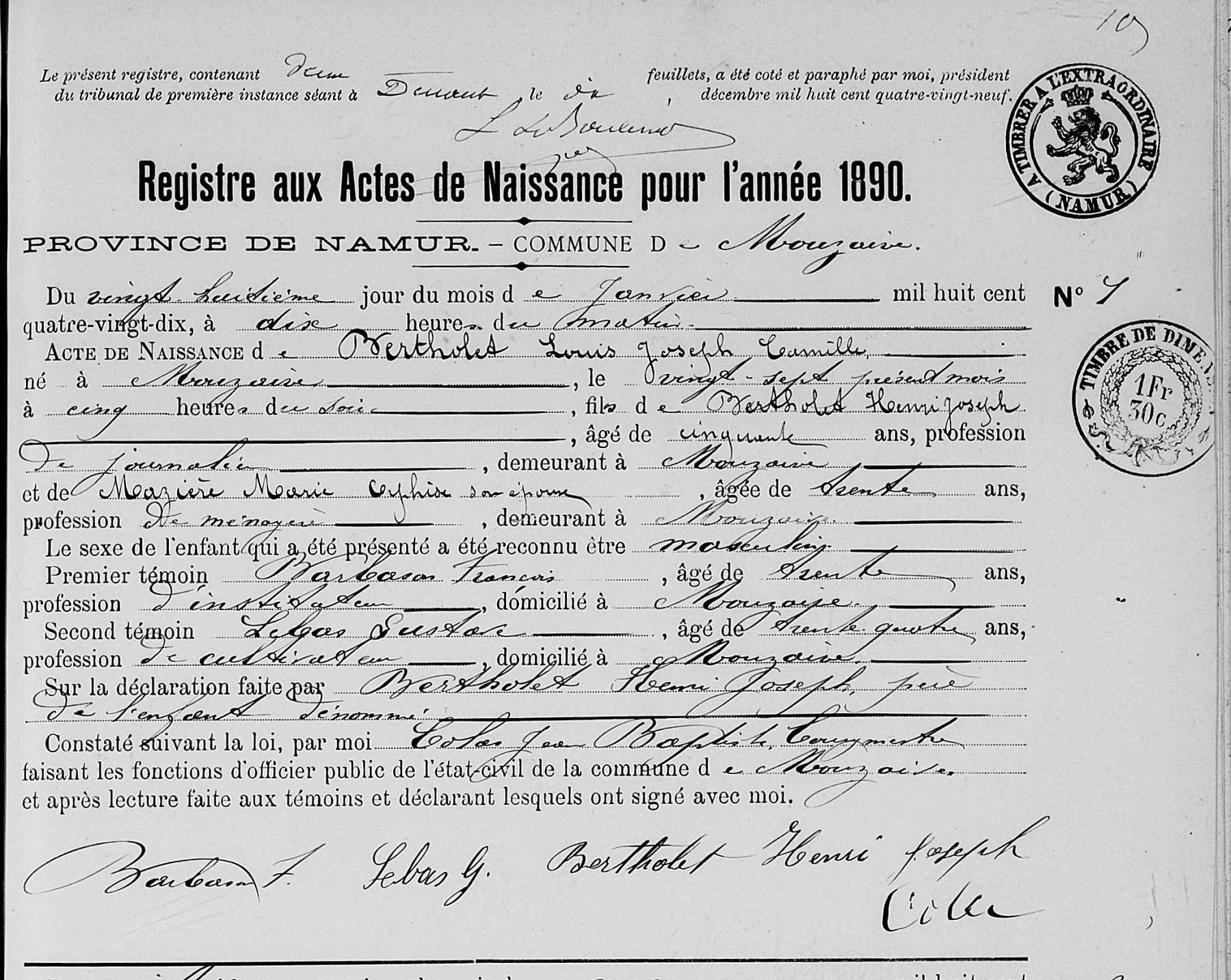 Acte de naissance (Source [358]) (Télécharger l'image pour la