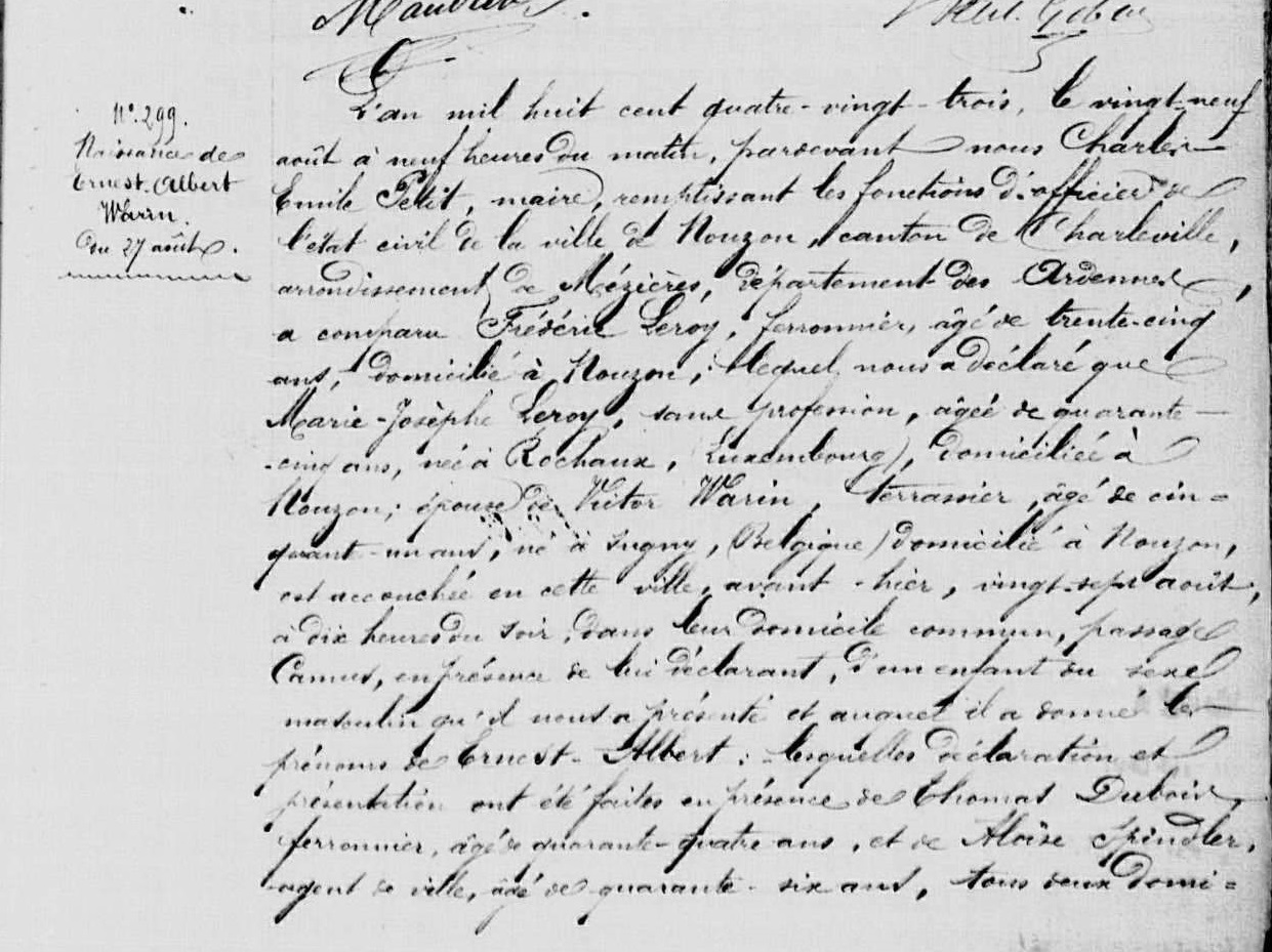 Acte de naissance (Source: Archives départementales des Ardennes,