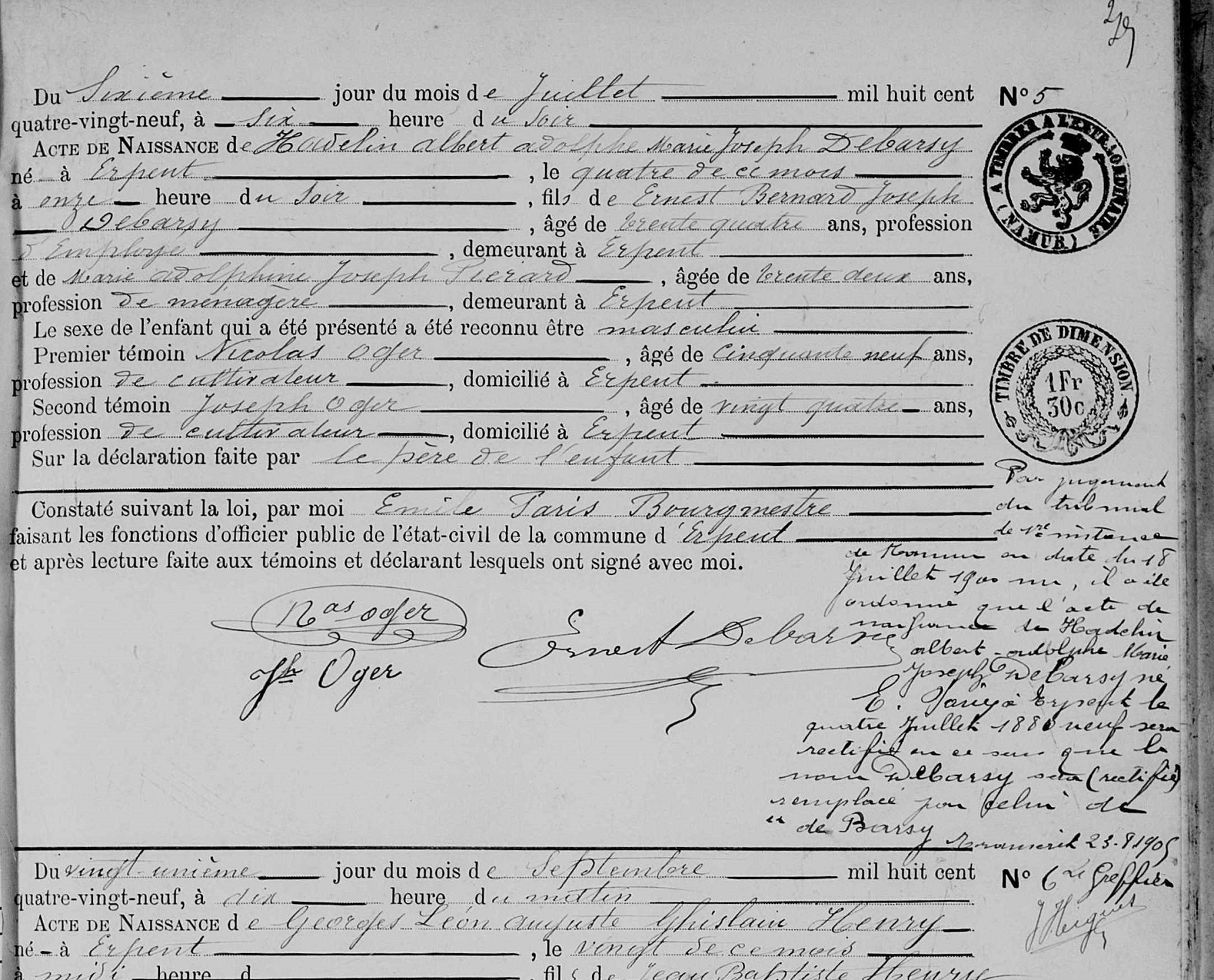 Acte de naissance (Source [358]) (Télécharger l'image pour la