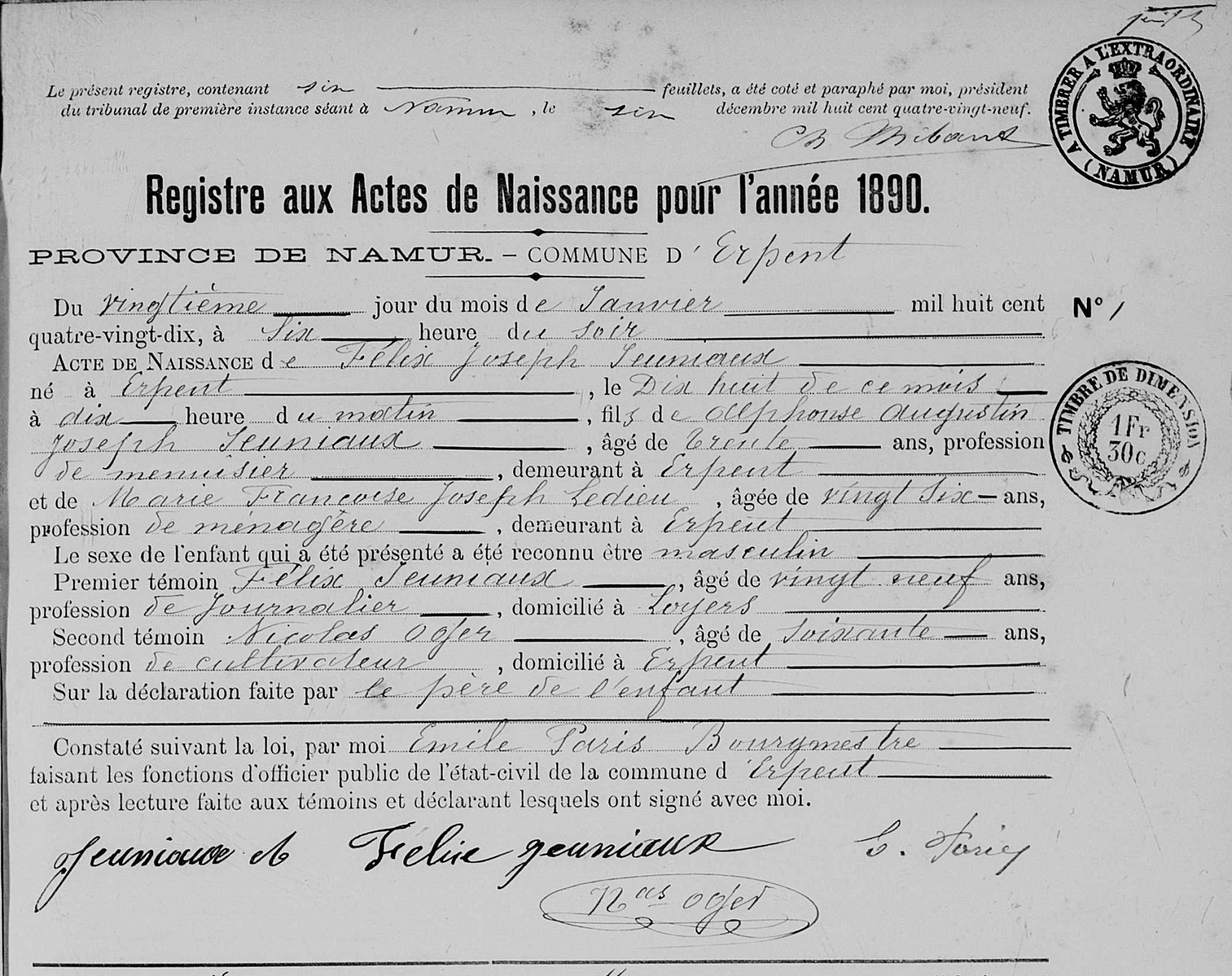 Acte de naissance (Source [358]) (Télécharger l'image pour la