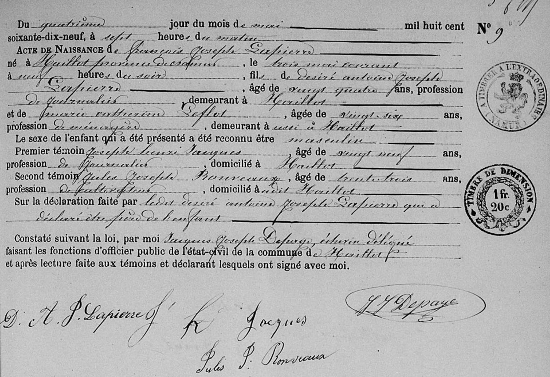 Acte de naissance (Source [358]) (Télécharger l'image pour la