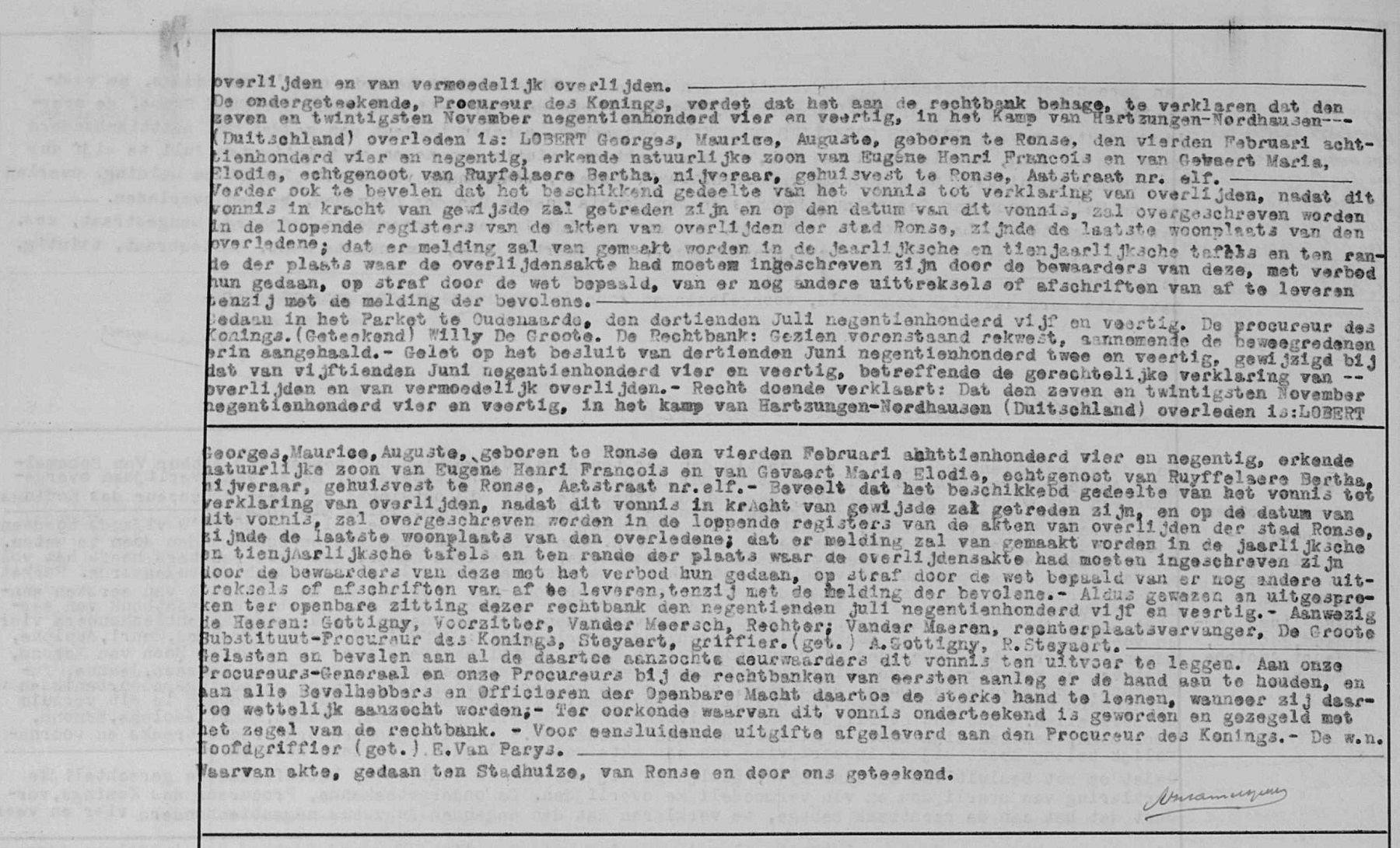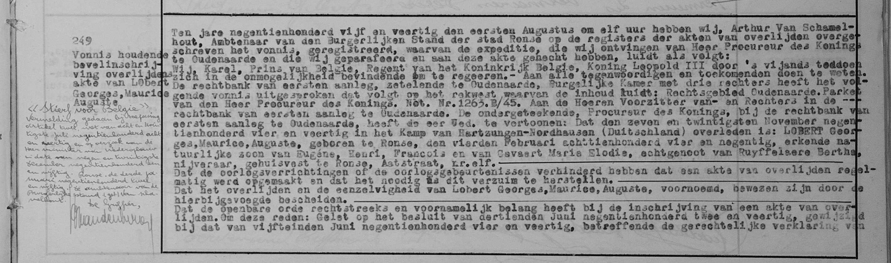 Overschrijving van gerechtelijke verklaring van overlijden in de
